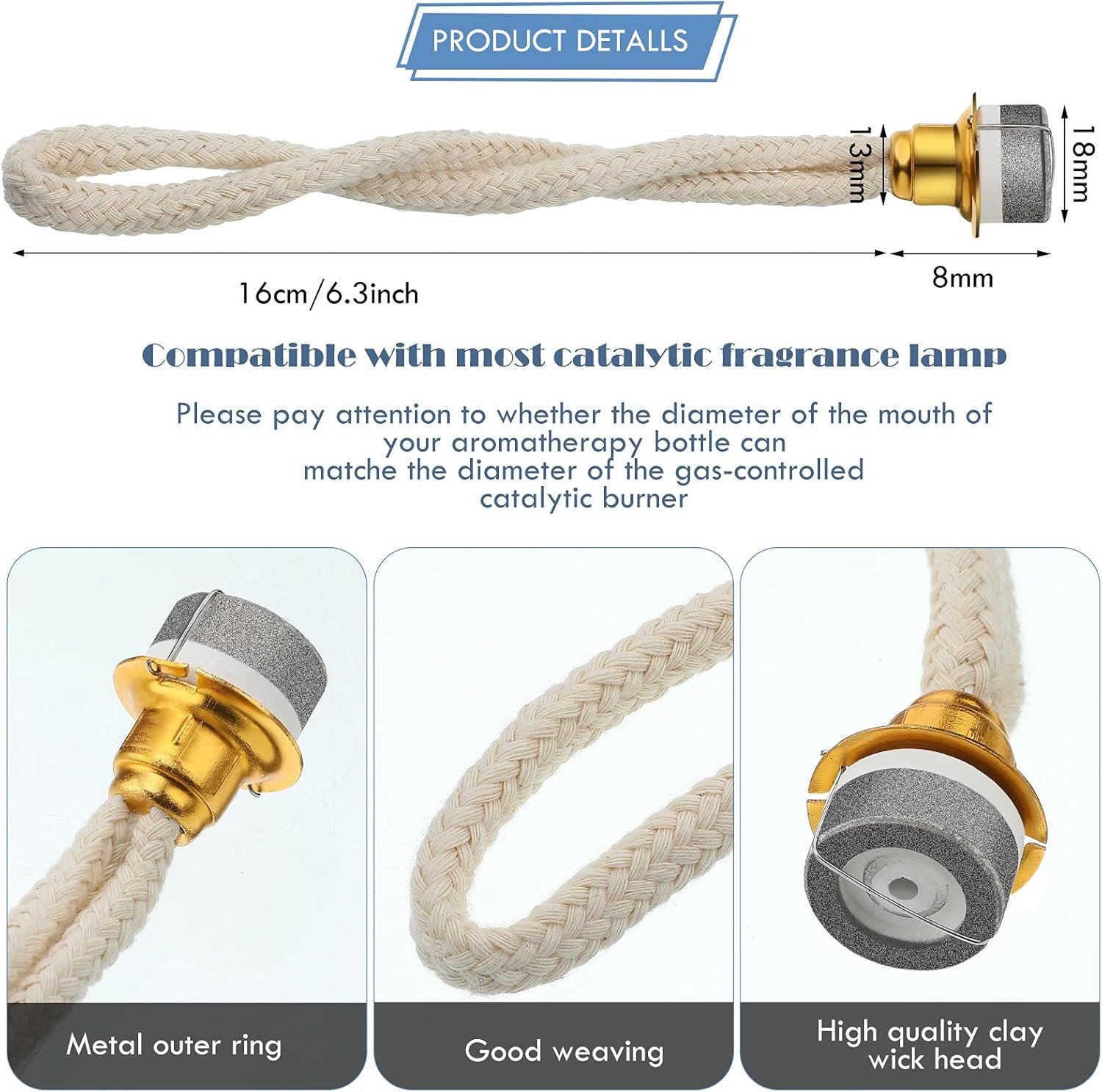 Longitud adecuada: cada reemplazo de mecha de lámpara de aceite de fragancia mide aprox. 16 cm/ 6,3 pulgadas, y el diámetro es de aproximadamente 13 mm/ 0,5 pulgadas, que es el tamaño normal adecuado para la mayoría de las lámparas de aromaterapia catalítica, y verifique el tamaño antes de comprar