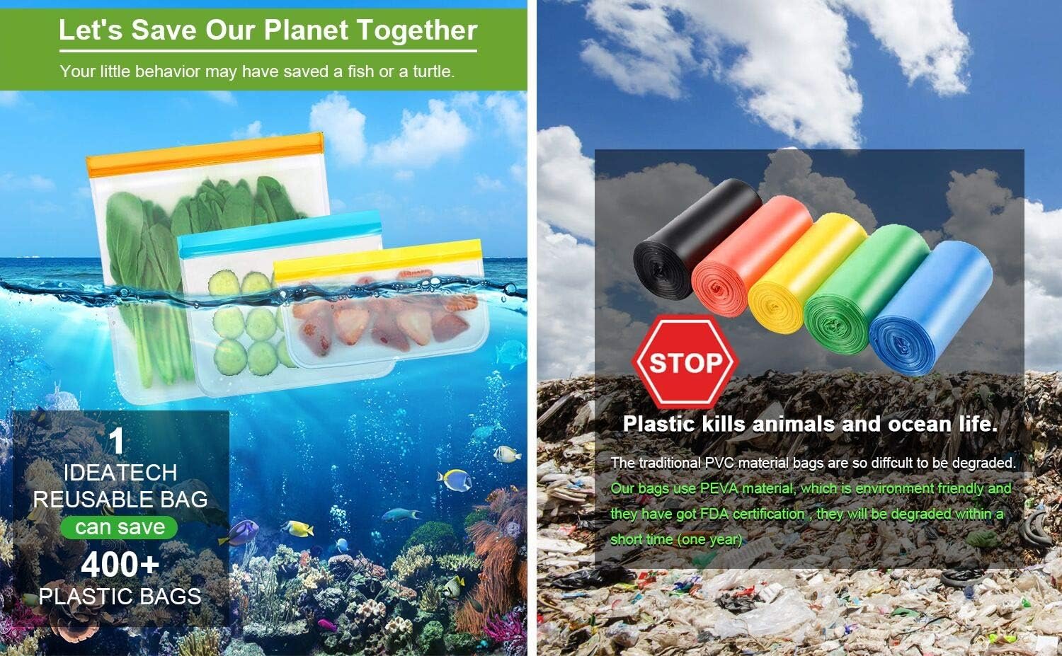 IDEATECH Bolsas de Almacenamiento Reciclables