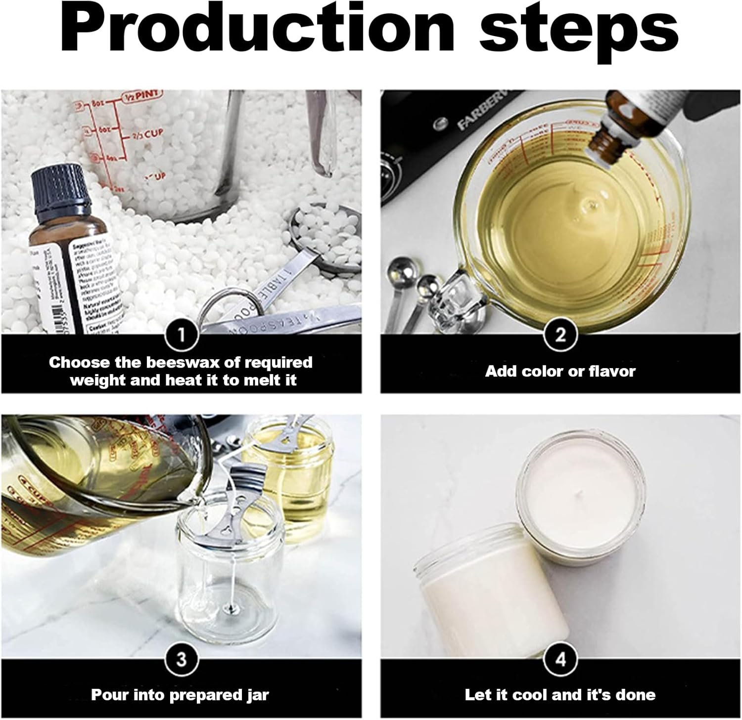 🐝Recibirás 200g de cera de abejas blanca natural, no tóxica y sin aditivos. El punto de fusión de 60-65 (℃) es muy fácil de operar y es su primera opción para su tranquilidad.