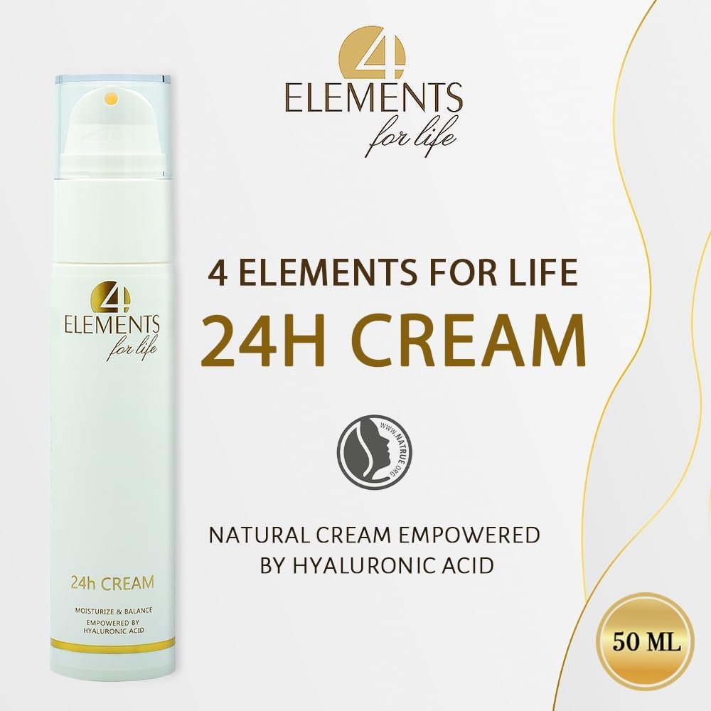 Sumérgete en el mundo de la belleza con la Crema de 24 horas 4 Elementos Para la Vida. El efecto hidratante instantáneo proporcionará un brillo y frescura incomparables a tu piel. La Crema Natural de 24 horas 4 Elementos Para la Vida es la clave para tu belleza excepcional. Enriquecida con Ácido Hialurónico de origen natural, este producto orgánico le dará a tu piel una suavidad magnífica de inmediato.