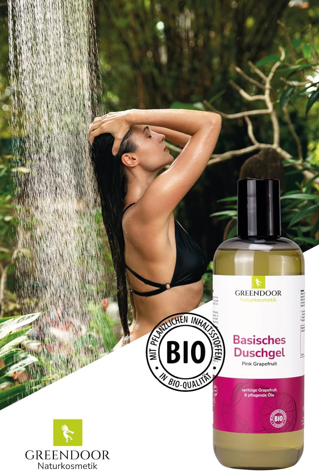 500 ml Greendoor Básica Gel de ducha Fucsia Pomelo – 100% Natural, Cosmética natural sin Silicona, sin Sulfato, sin conservantes