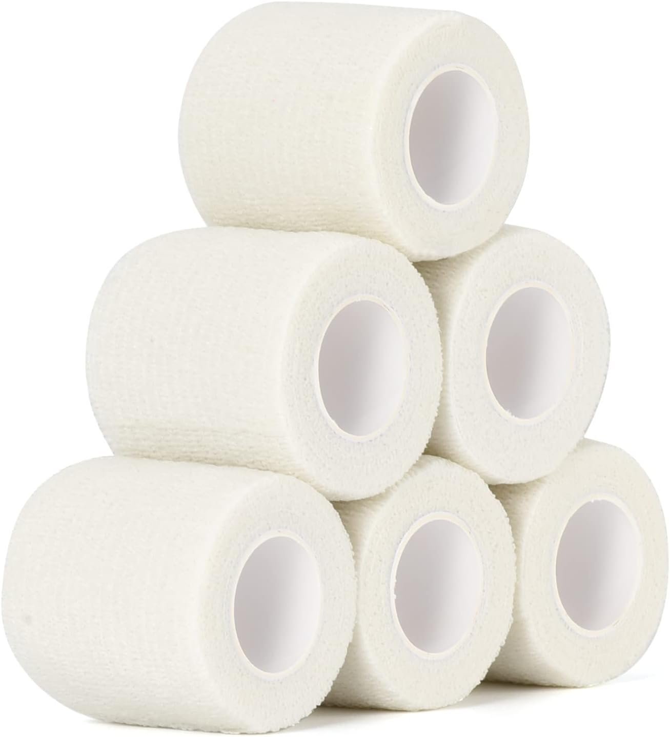 6 Rollos Venda Cohesiva 5cm x 4.5m Banda Venda Cinta Deportivo Cohesivo Vendaje Autoadhesivo para Primeros Auxilios Elástico Bendaje Adhesiva Envoltura Tape Vet para Dedos Perros Mascotas (Blanco)