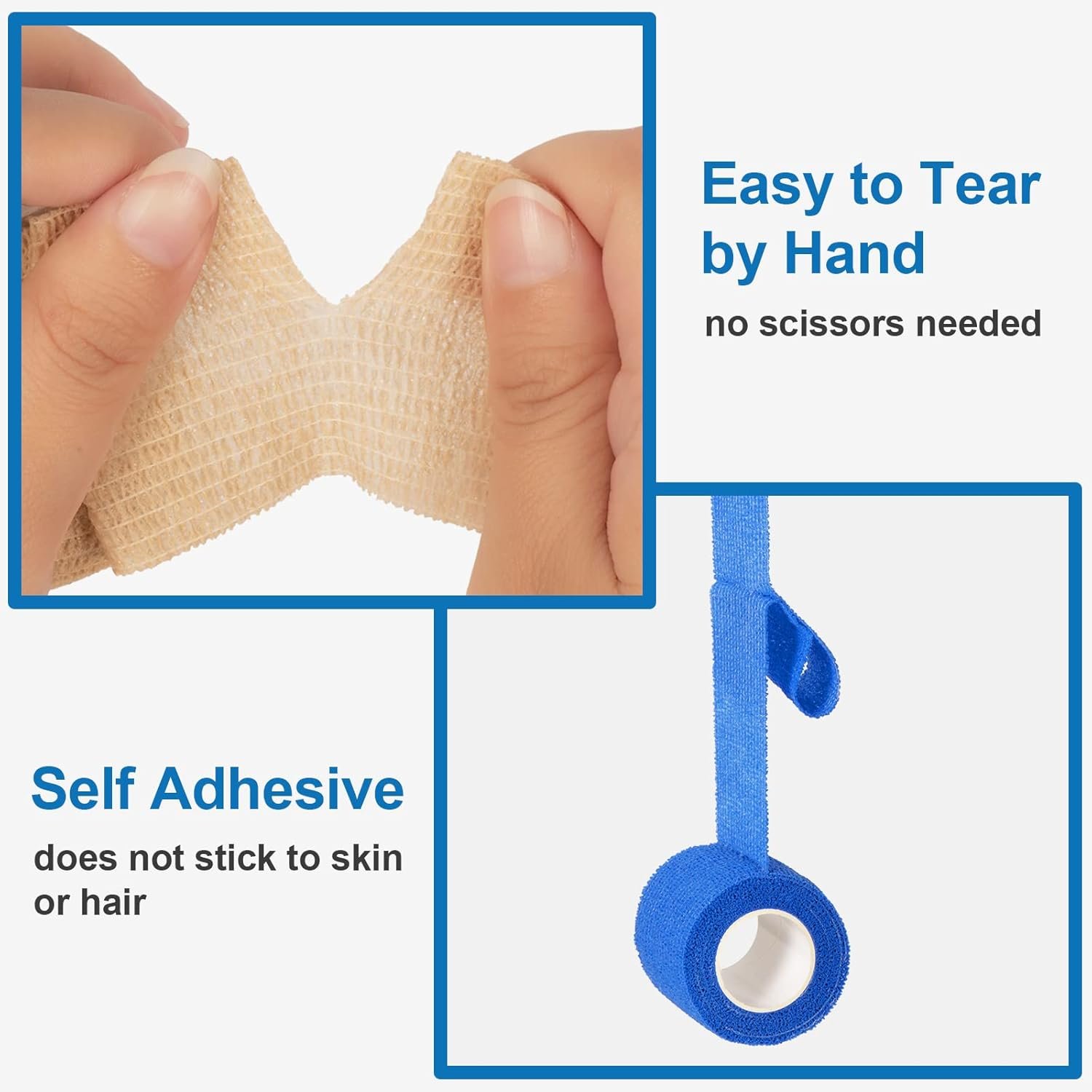 [Vendaje Autoadhesivo Versátil] – Vendaje autoadhesivo bueno para comprimir nuevas lesiones, aliviar la hinchazón y promover la curación. Ideal para distensiones y esguinces. A las personas deportistas les gusta usar el vendaje elástico sport en muñecas, dedos y manos para estabilizarse. Los vendajes cohesivos autoadhesivos también se pueden usar en cubiertas de mangos de tatuajes, mangos y botellas para evitar resbalones.
