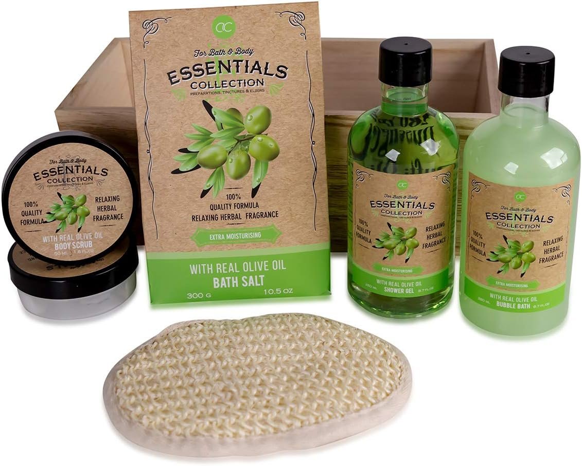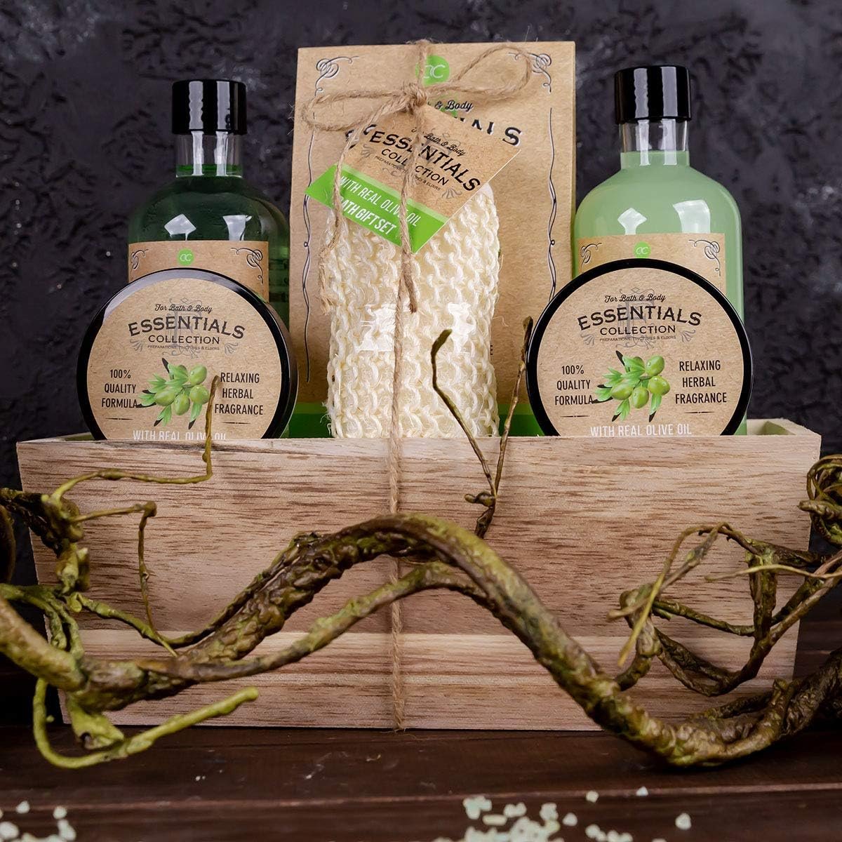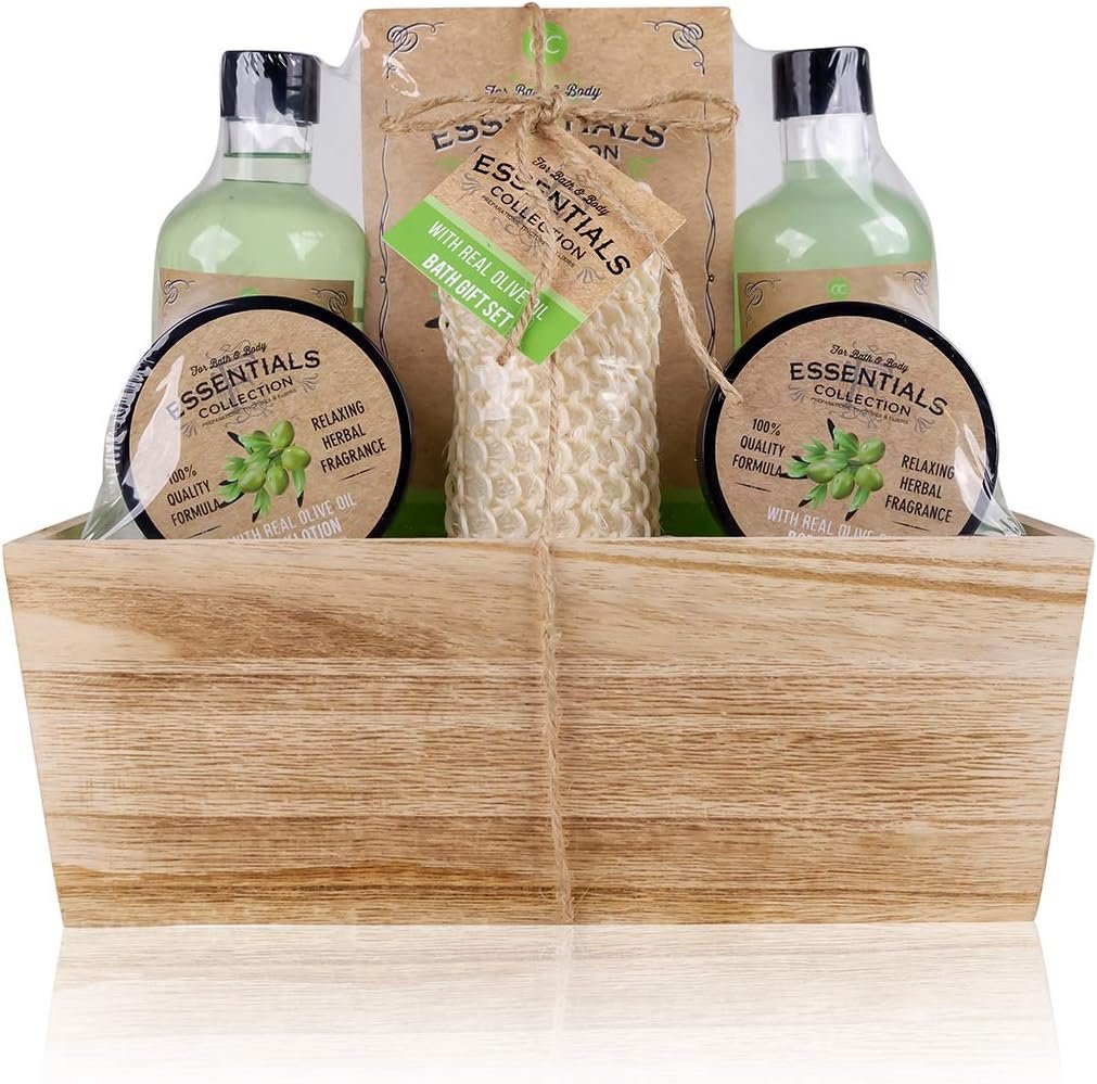 SET DE CUIDADO: Los productos de cuidado enriquecidos con aceite de oliva miman la piel con abundante hidratación, dejándola suave y flexible. Todos los productos vienen en una elegante caja de regalo de madera, que es perfecta para almacenar cosas y decorar.
