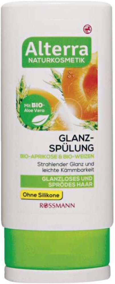 Acondicionador de brillo de albaricoque orgánico y trigo orgánico, cosmética natural, sin siliconas, brillo brillante, fácil de peinar.