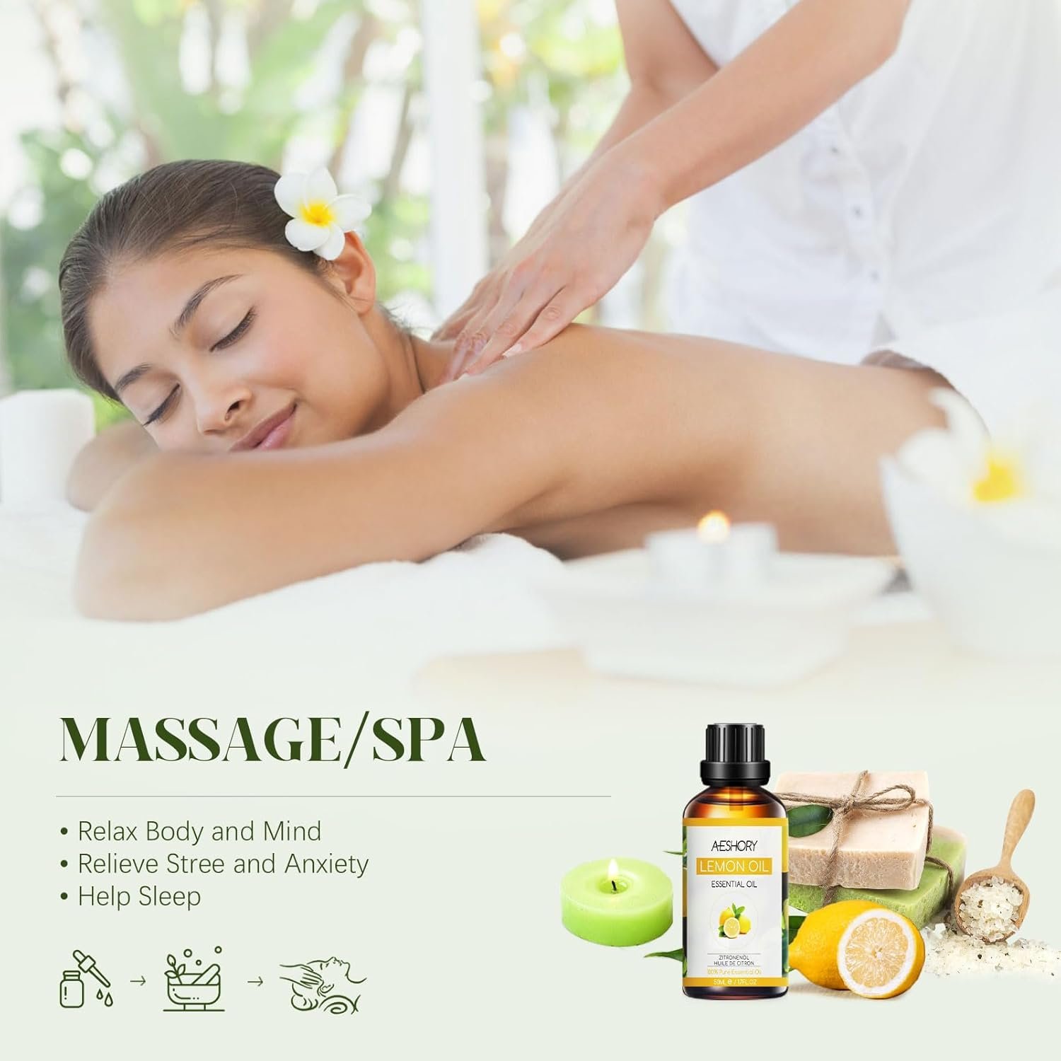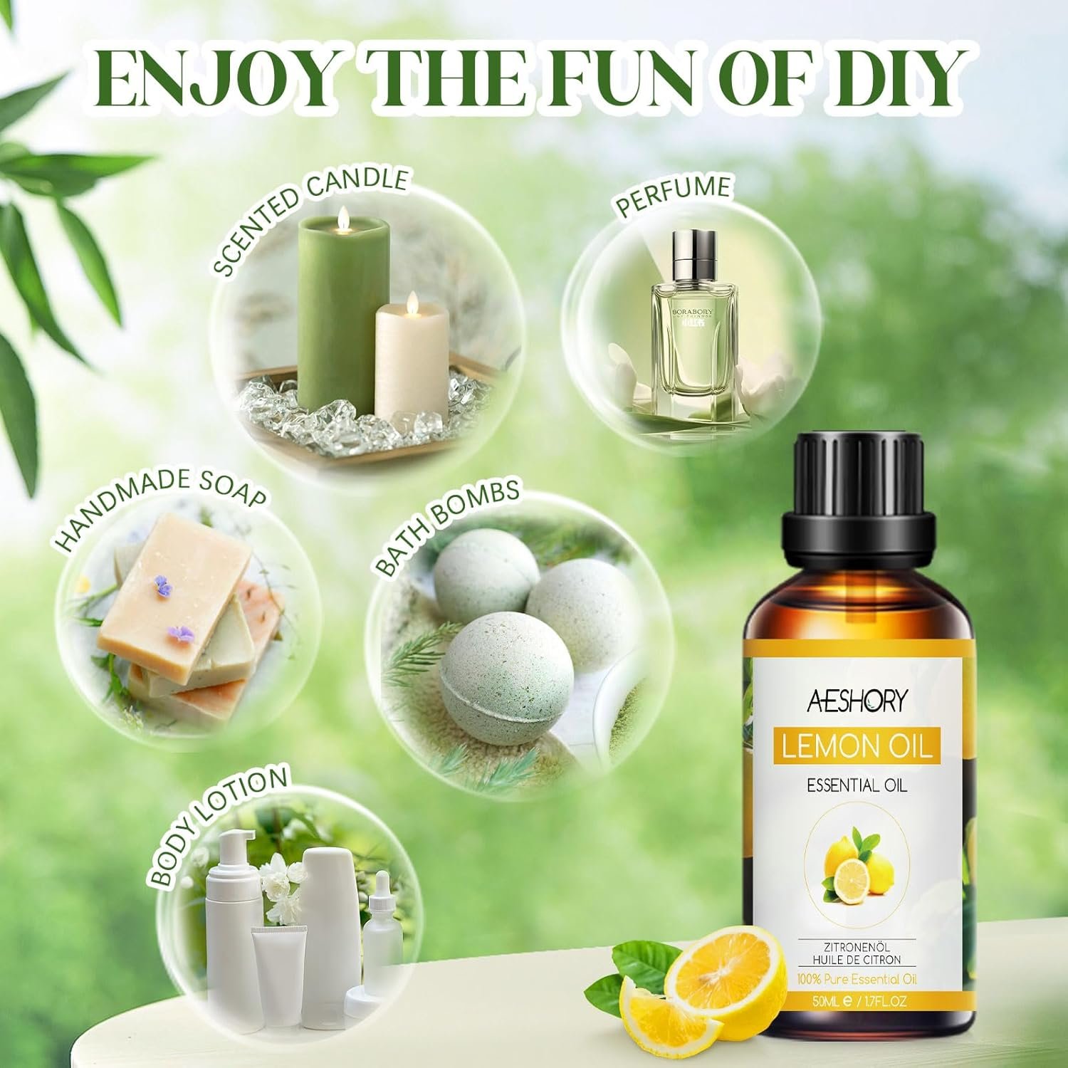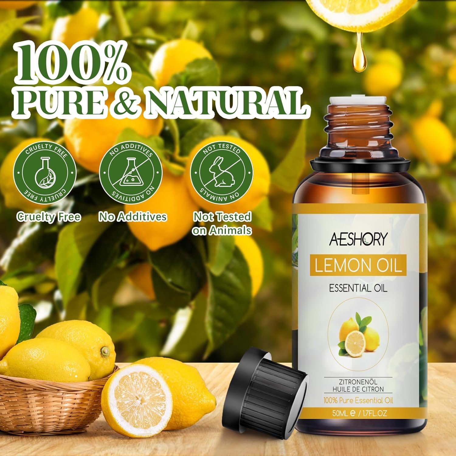AESHORY Aceite Esencial de Limón 50ml, 100% Puro Naturales Aceites Esenciales de Aromaterapia de Grado Terapéutico para Humidificador Difusores, Masaje, Baño, Cuidado del Cabello y la Piel