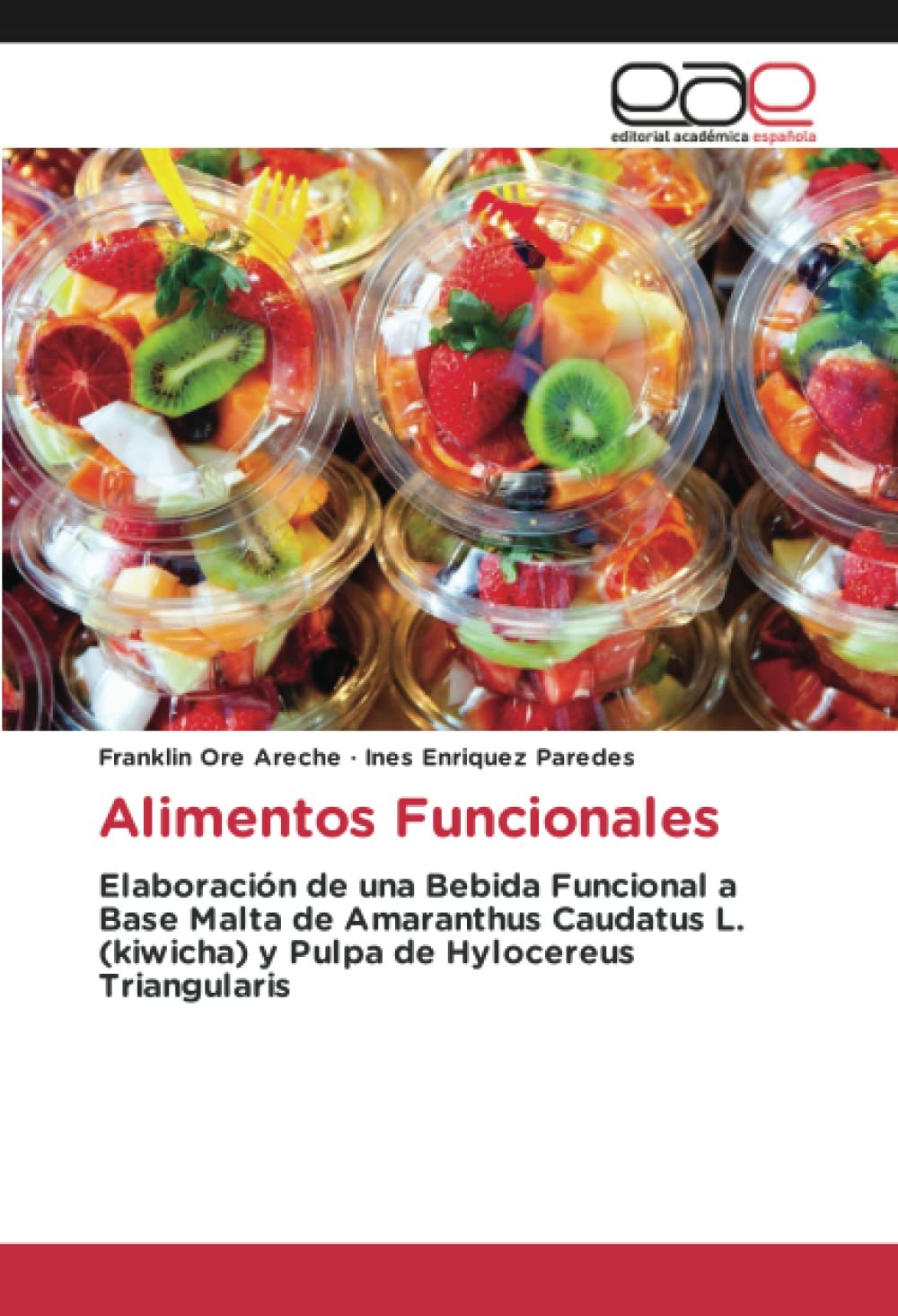 El presente libro trata sobre la obtención de la bebida funcional a base de malta de Amaranthus caudatus L. (kiwicha) y pulpa de Hylocereus triangularis (pitahaya), formulada en 3 tratamientos, a los cuales se realizó la prueba de aceptabilidad; a la muestra que resultó con mayor puntuación se realizó el análisis fisicoquímico y microbiológico. Para la evaluación sensorial se aplicó un test de escala hedónica de 1 a 5, (1: menor calificación y 5: máxima calificación) a 20 jueces semi entrenados, resultando con mayor puntuación en todos sus atributos el Tratamiento 2 (T2), para su formulación se utilizó (agua 3 L, pulpa de pitahaya 1 L, harina de kiwicha malteada 100g, azúcar blanca 220 g, ácido cítrico 3,70 g y CMC 4,5 g). Se realizó el análisis fisicoquímico y microbiológico; en el que se obtuvo un pH de 3,7 y 11,50 °Brix, los mismos que están dentro de los límites de la NTP 203.110. (2009), en el análisis químico proximal se determinó la humedad, proteína, grasa, ceniza y carbohidratos. En los resultados microbiológicos hubo ausencia de Aerobios mesófilos, mohos, levadoras y Coliformes.