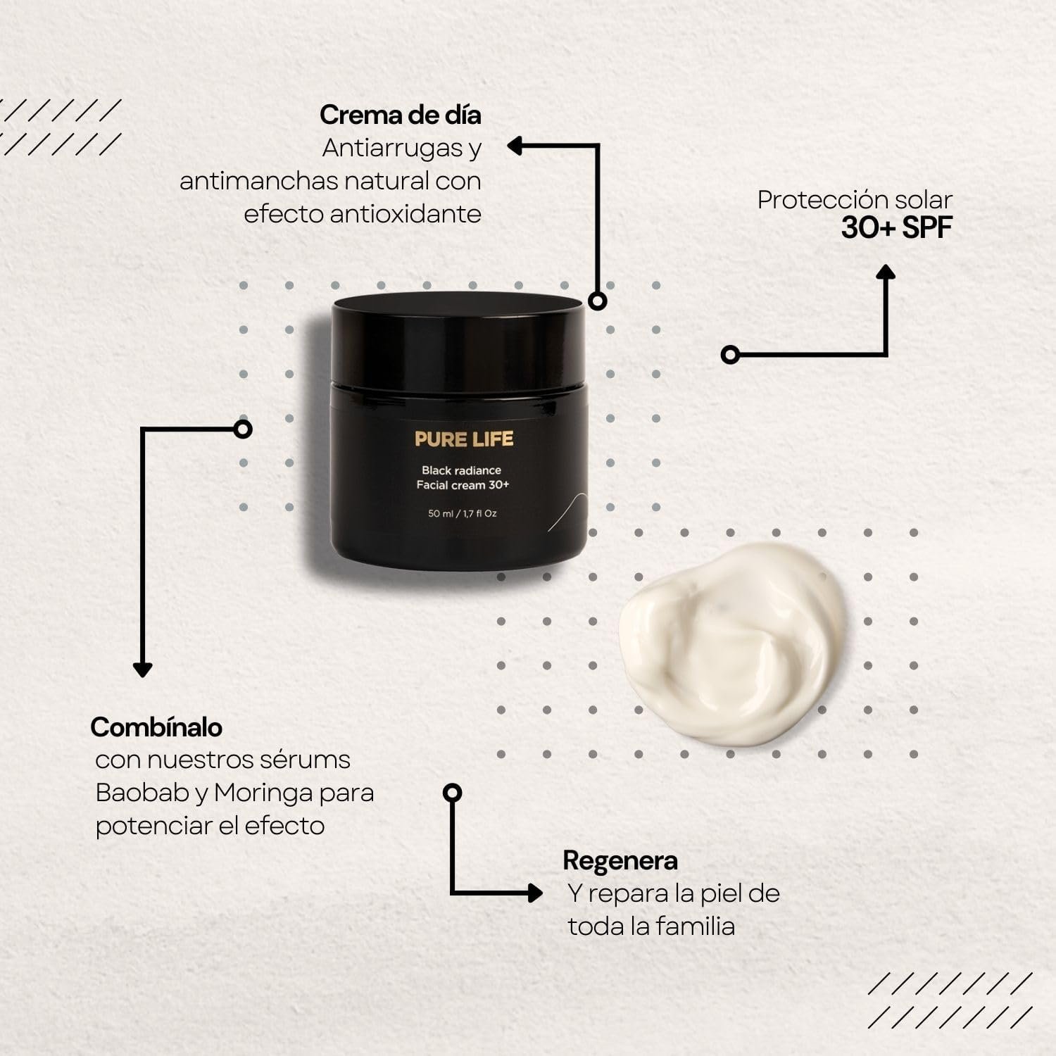 ✔️ 2 en 1: Crema Facial de Día Anti-edad y Protector Solar 30, ideal para tratar tu piel de arrugas y manchas, además de protegerla del sol