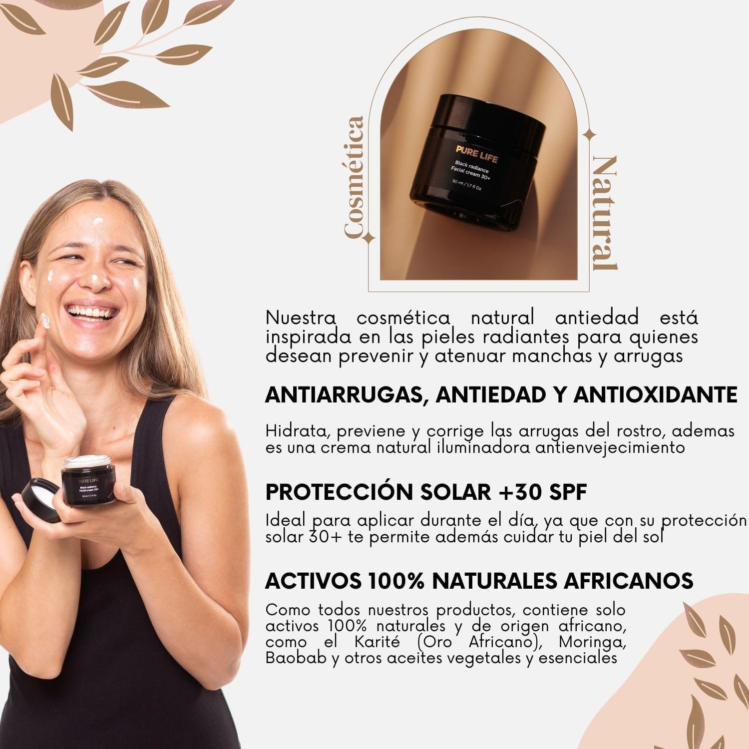 AOKlabs – Black Radiance Crema Facial de Día Anti-edad 30+ SPF I 2 en 1, Crema Antiarrugas Mujer y Protector Solar con Oro Africano, Moringa y Baobab I 50 ml