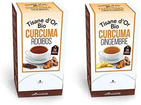 Descubre estos dos te de oro orgánico de 20 sobres cada uno. Notas picantes, almizclado y azafrán para disfrutar de los beneficios de ambos rizomas y notas afrutadas y picantes para disfrutar de los beneficios de cúrcuma y Rooibos para el segundo! Para ser infundido en té de hierbas simple con un toque de limón, en Chaï añadiendo leche y miel o frío durante las comidas! Ingredientes de té de hierbas con jengibre: La cúrcuma * (48%), la canela de Ceilán *, cardamomo *, jengibre * (11%), cilantro *, hinojo *, * vainilla, regaliz *, clavos *, pimienta negro *. * Producto de agricultura ecológica. los ingredientes a base de hierbas en Rooibos: * Cúrcuma (48%), rooibos * (19%), la canela de Ceilán *, cardamomo *, jengibre *, regaliz *, pimienta negro *, * vainilla. * Producto de agricultura ecológica. Cada caja contiene 20 sobres.