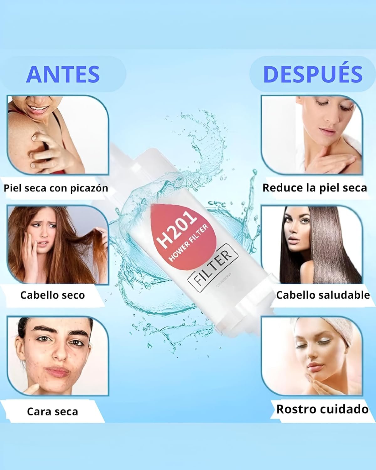 Filtro de ducha de alta calidad: Purifica el agua y la enriquece con vitaminas y minerales beneficiosos.