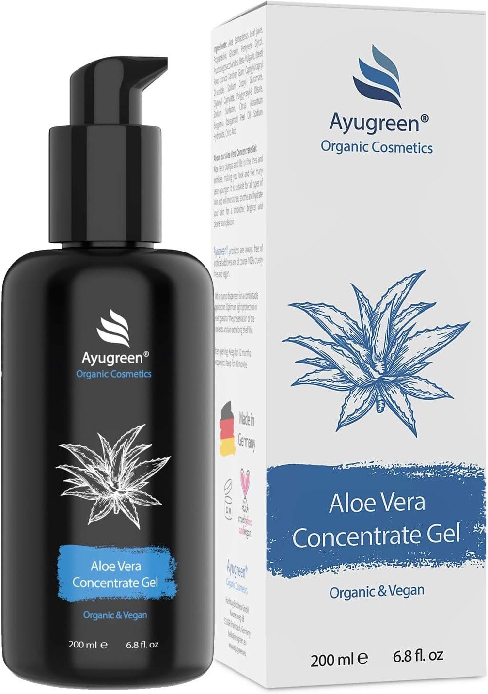 El gel de áloe vera Ayugreen se elabora en Alemania siguiendo los estándares más altos de calidad porque Ayugreen representa la mejor cosmética natural sin aditivos. ¡No usamos ingredientes cuestionables ni dañinos, como parabenos, siliconas, sulfatos, pesticidas, tintes ni fragancias artificiales en nuestros productos! Nuestro gel corporal de aloe vera no contiene rellenos y es hipoalergénico.