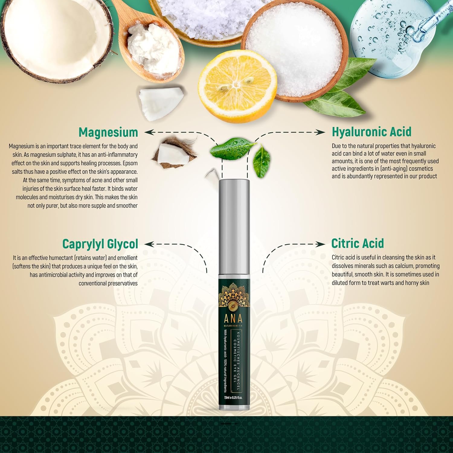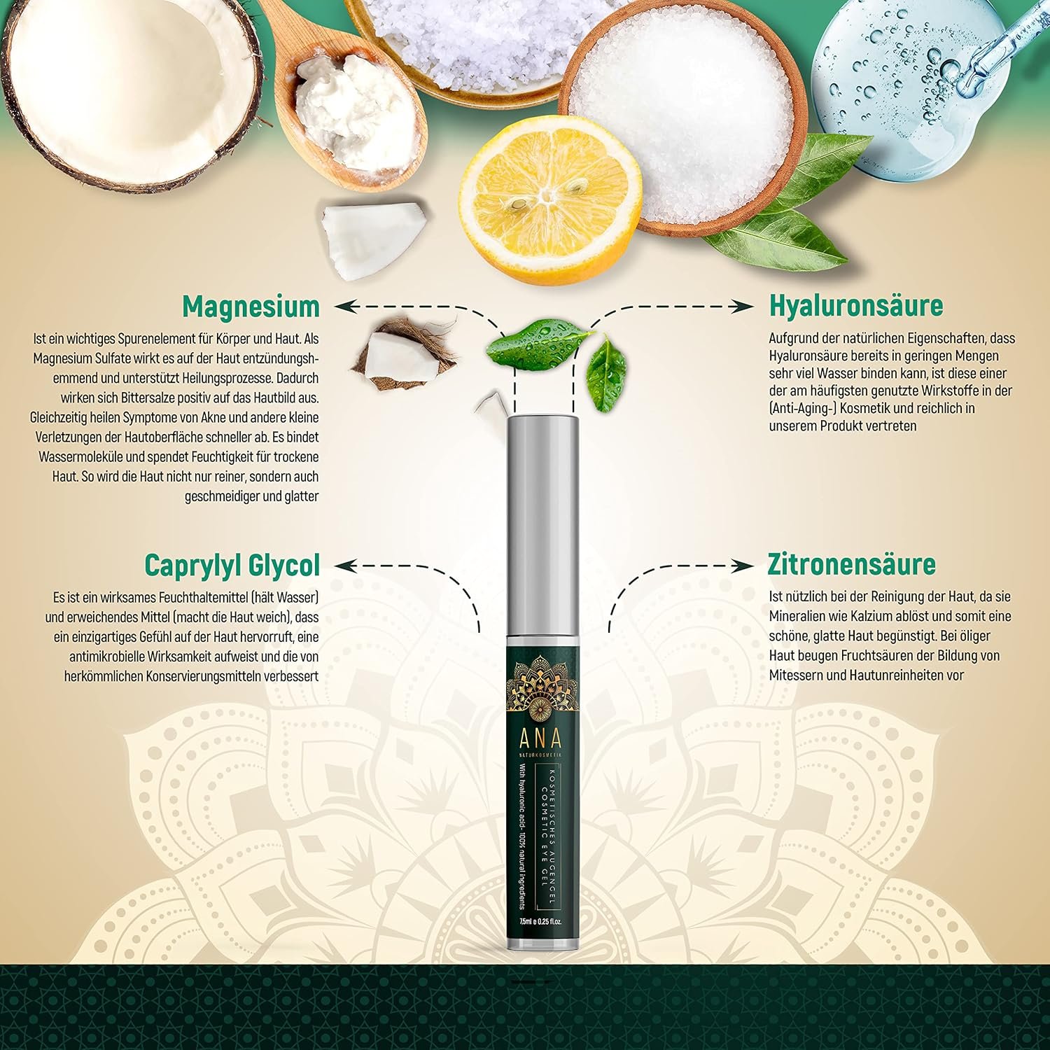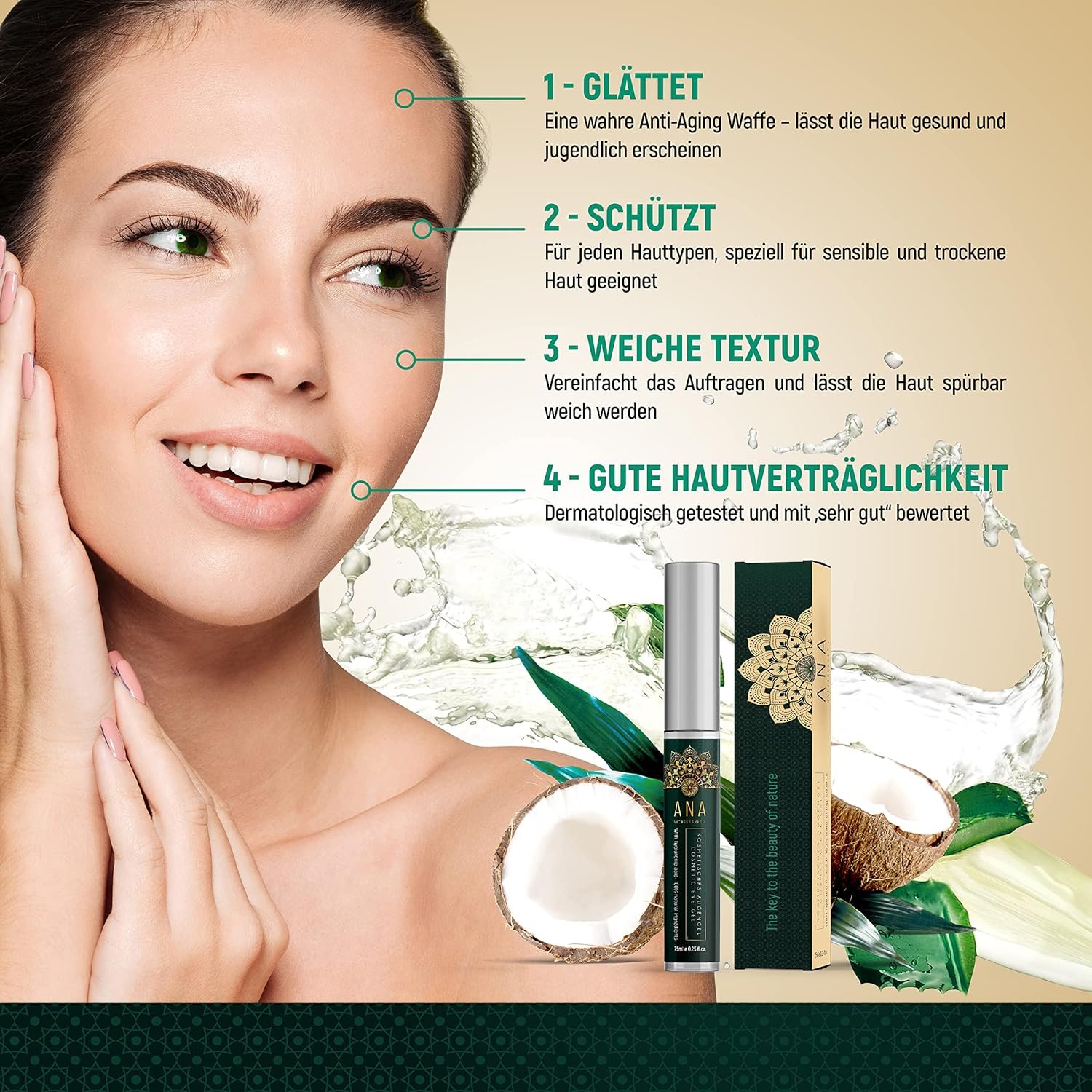 Gel para ojos hialurónico antienvejecimiento, para rellenar pequeñas arrugas, efecto inmediato, un gel para ojos biológico con hialurón, 7,5 ml, cosmética natural ANA fabricado en Alemania