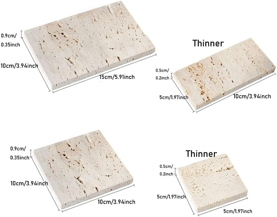 Material: hecho de material de piedra natural, con más o menos agujeros en la superficie, la textura de cada pieza es única, ligeramente golpeada en los lados/esquinas, es normal. Habrá colores variados en la parte posterior, que pueden ser reticulados o suaves. Si te importa, compra con cuidado.