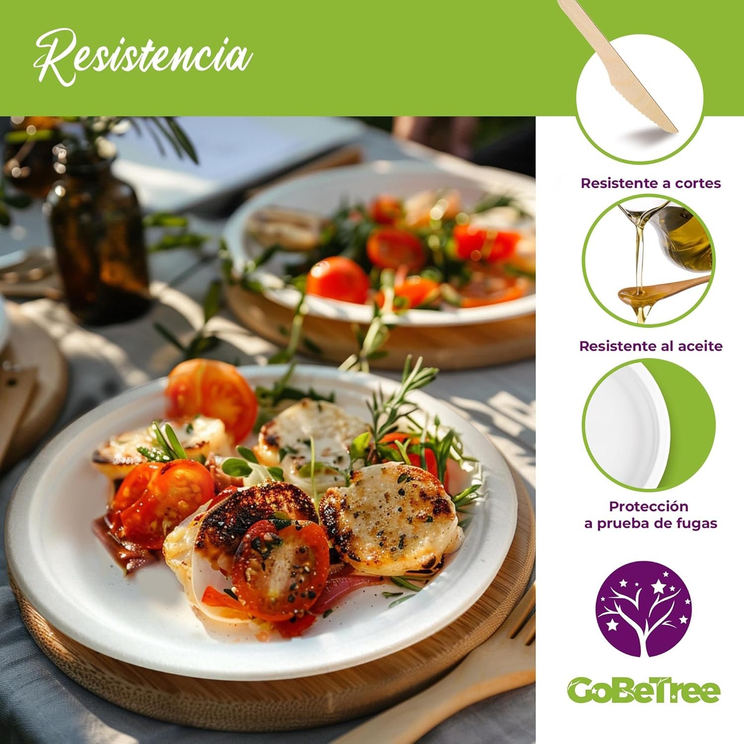 🌿 RESISTENCIA: Los platos desechables de caña de azúcar son mucho más fuertes y resistentes que los platos convencionales de papel. Es resistente al uso de aceite, impermeable al agua y no se deforma.