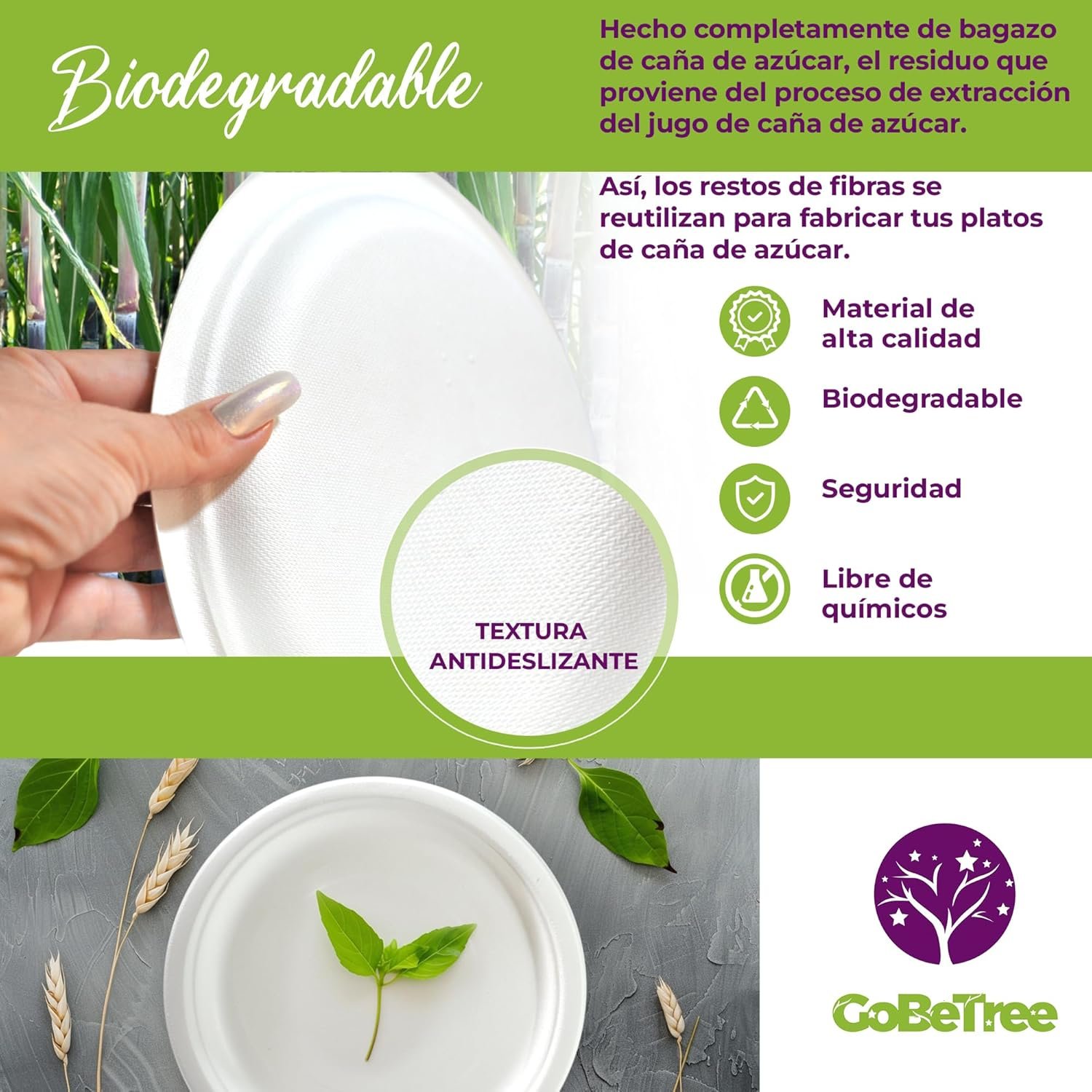 🌿 BIODEGRADABLE: Nuestros platos desechables provienen de 100% de fibra de caña de azúcar, un material, sostenible, renovable y biodegradable. Es una gran alternativa al papel o al plástico tradicional. Una vez usados se pueden tirar a la basura orgánica.