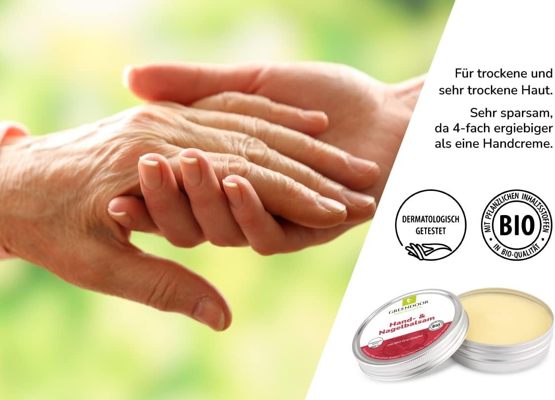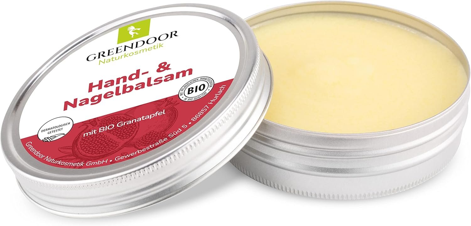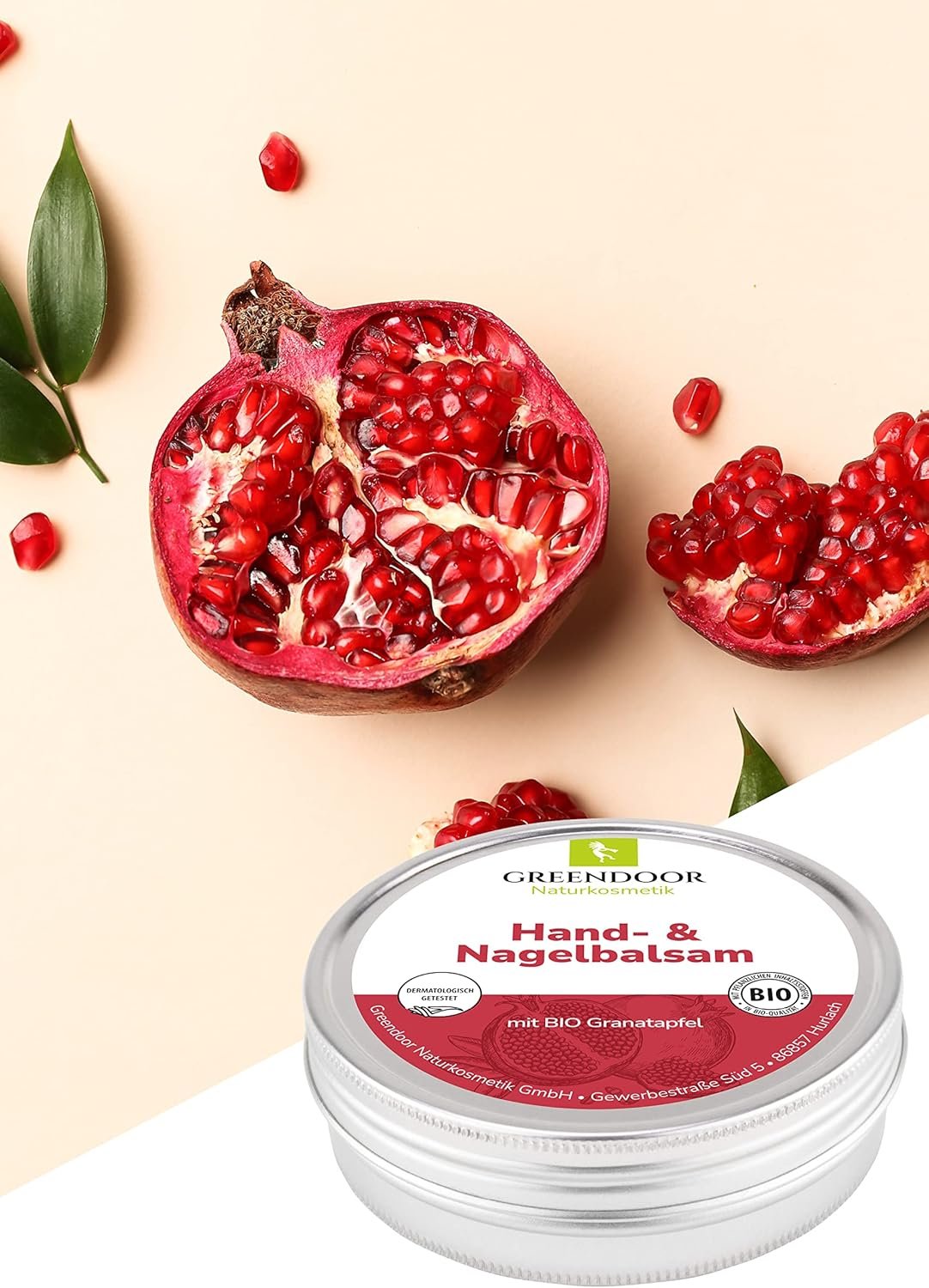 GREENDOOR bálsamo de manos 75 ml, crema ideal para pieles muy secas con BIO granada, cosmética natural sin parabenos/aceite mineral, 4 veces el rendimiento de una crema, bálsamo de uñas