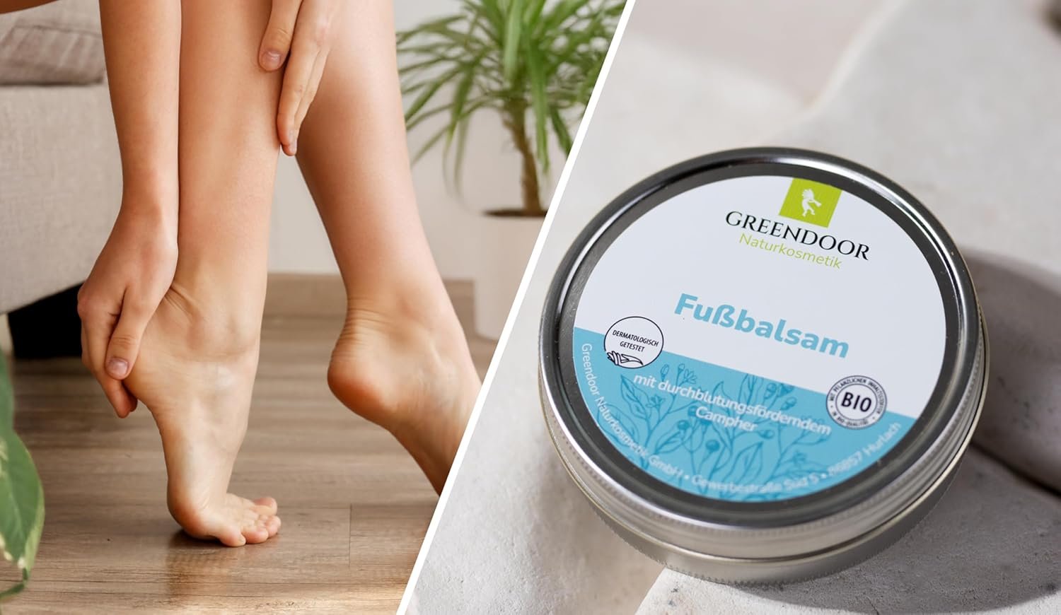 GREENDOOR bálsamo para pies con manteca de cacao BIO, crema y ungüento para pies, 4 veces el rendimiento de una crema, cosmética natural, crema para pies