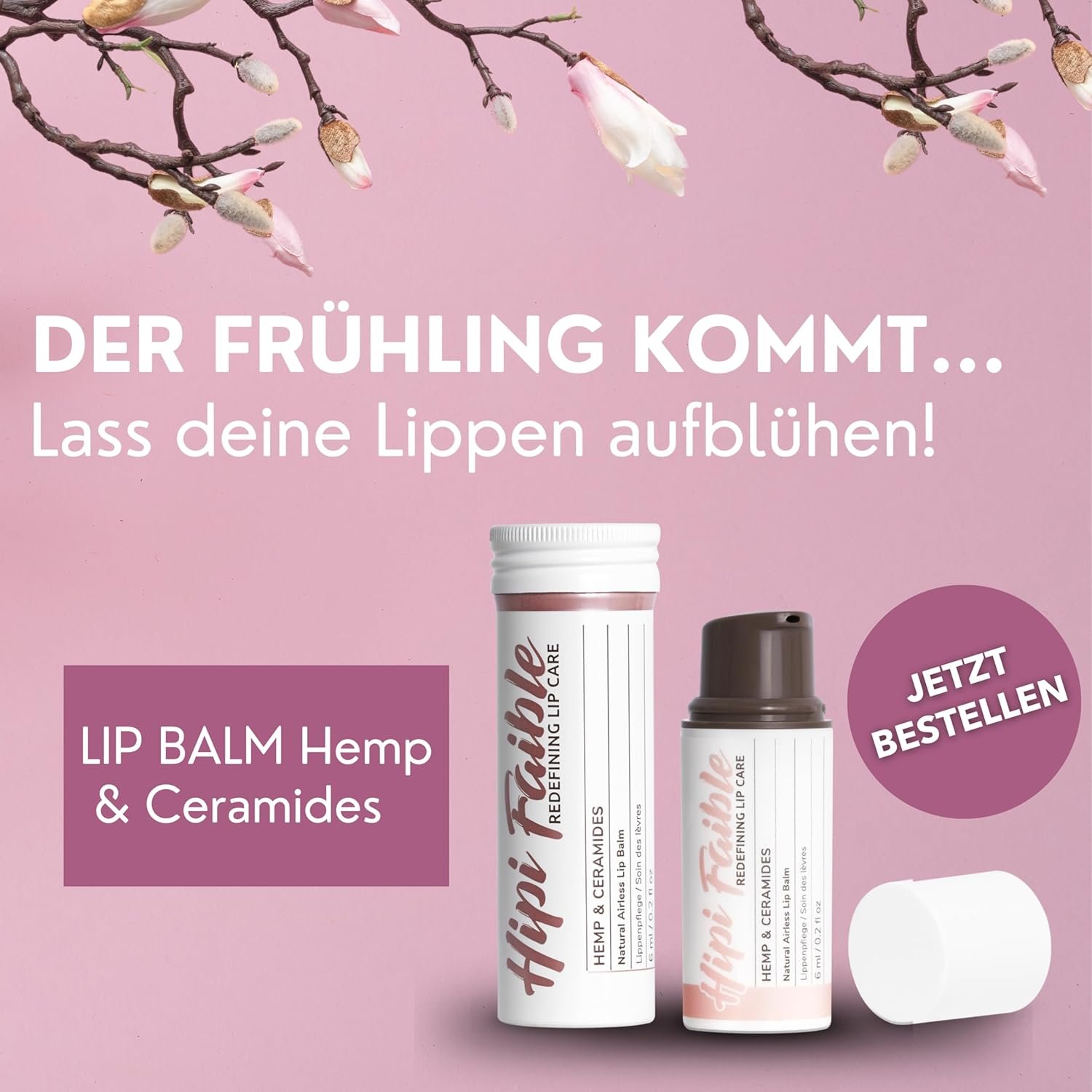 Hipi Faible es un cuidado de labios innovador y de alta calidad basado en cosméticos naturales. Se basa en cera de lana orgánica y manteca de karité orgánica y cera de jojoba orgánica. Hemos embotellado nuestro cuidado de labios en un dispensador higiénico sin aire que protege el producto de la luz y el aire y, por lo tanto, evita la oxidación no deseada. Por último, el pequeño dispensador de bomba es simplemente súper práctico y el compañero perfecto en la vida cotidiana, que también puede ser compartido.