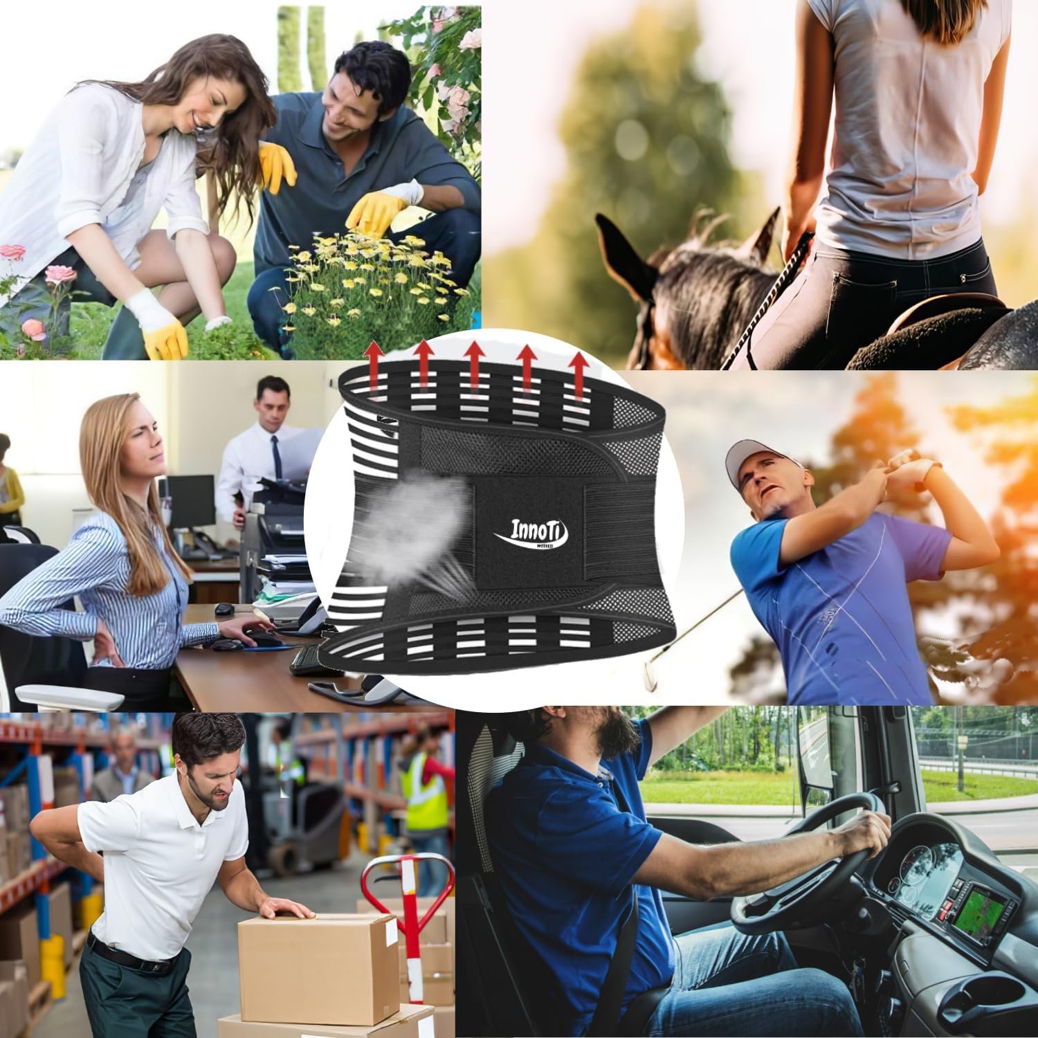 InnoTi Faja Lumbar para Hombre y Mujer – Cinturón Protector de los Lumbares en Actividades Deportivas, el Gimnasio y en el Trabajo – Evita Lesiones y Dolor de Espalda