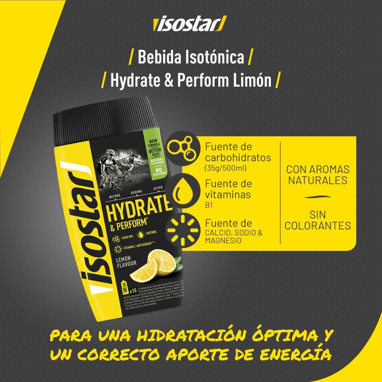 Isostar Hydrate & Perform – 400 g de Bebida Electrolítica Isotónica – Solución Electrolítica para Mejorar el Rendimiento Deportivo – Sabor Limón, 10 raciones