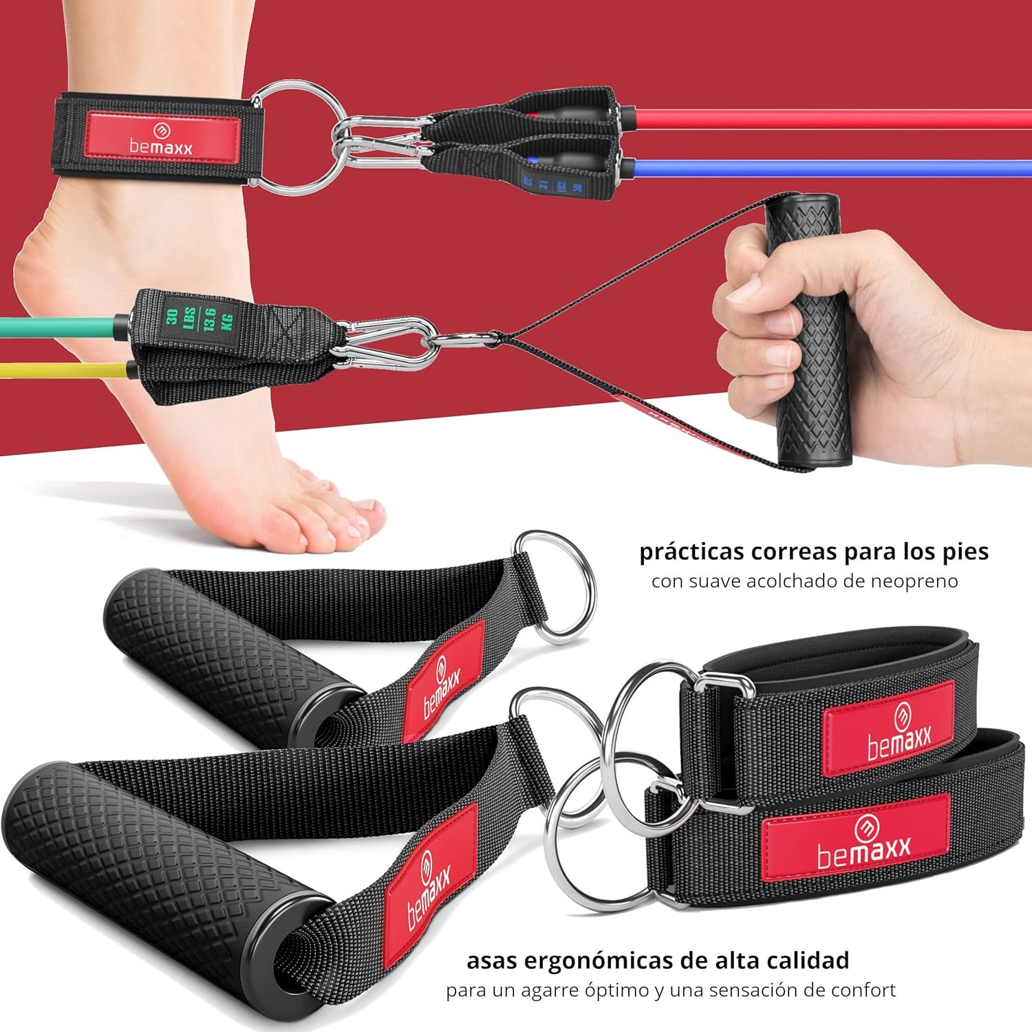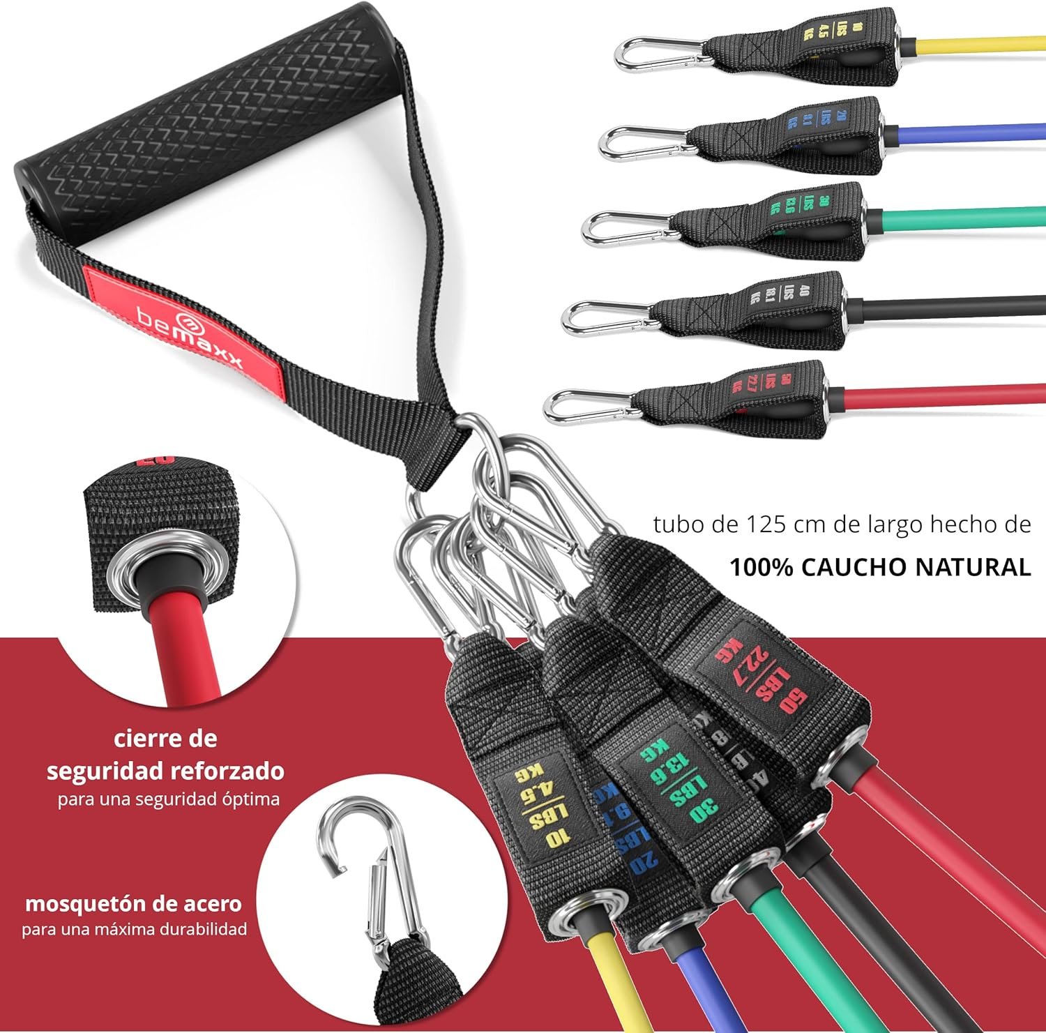 Juego de Bandas de Resistencia elásticas + guía de Ejercicios – Cintas Profesionales: 5 Tubos + Tobillera, Anclaje para Puerta & Asas Acolchadas | Fitness, Gimnasio, Deporte, Culturismo