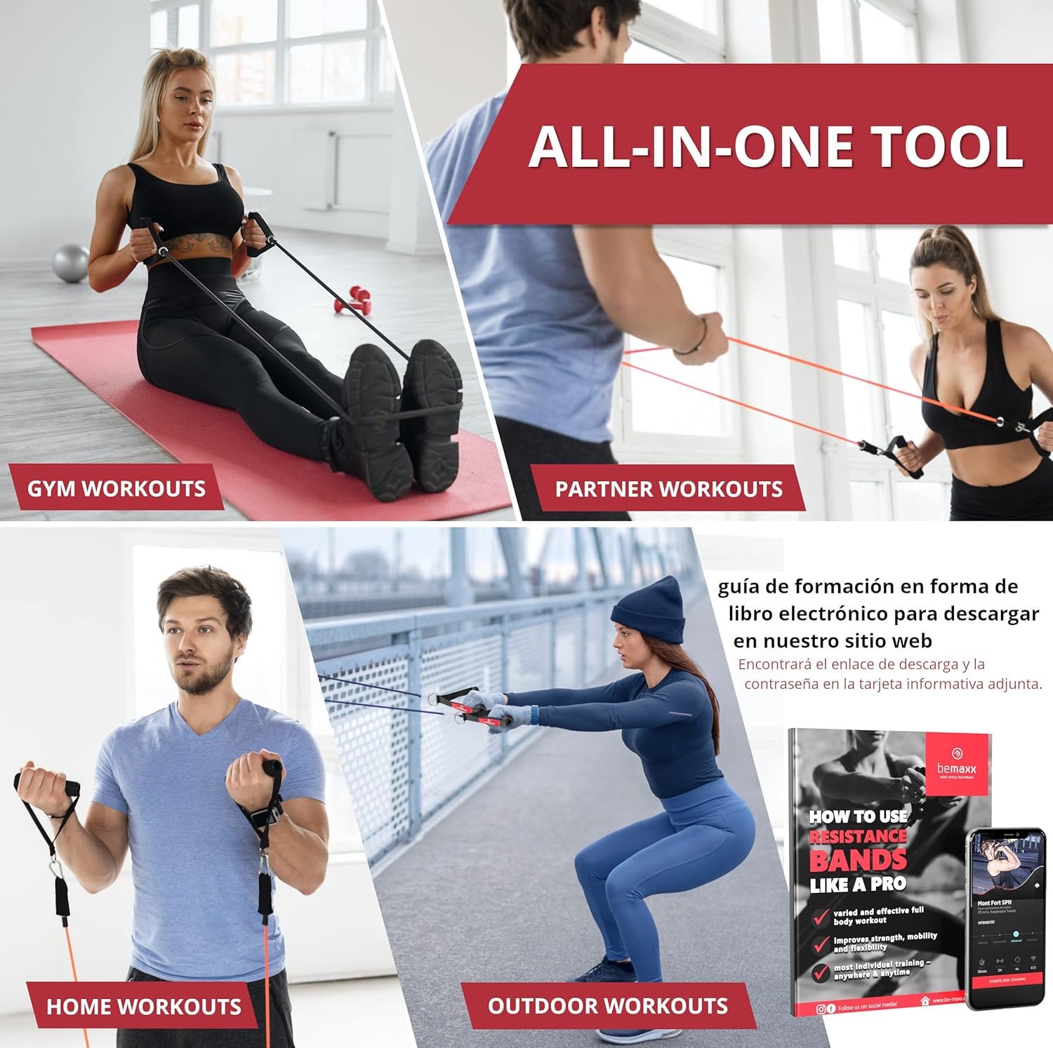 ¡Entrena todo tu cuerpo sin pesas y aumenta gradualmente la resistencia cambiando la fuerza de la banda o simplemente combinando varias bandas juntas!