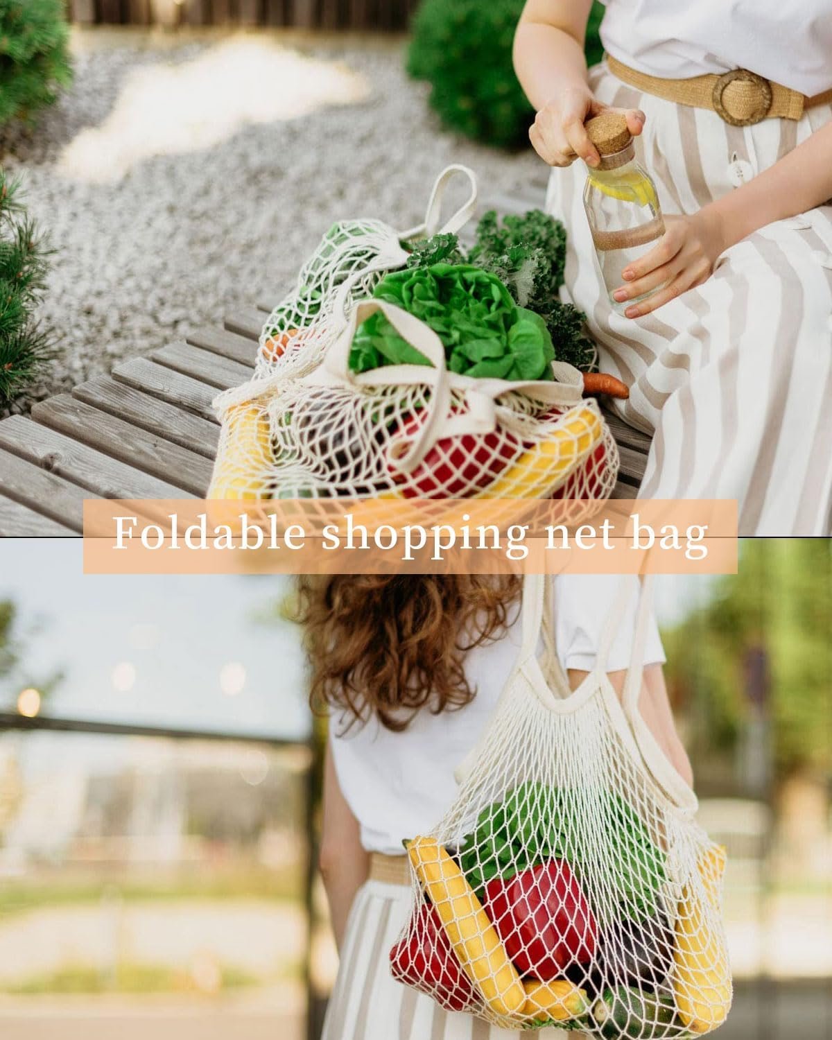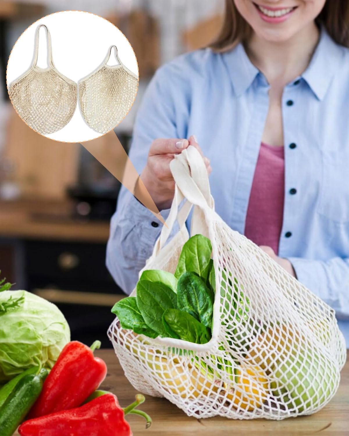 【Ligero y portátil】: liviano, ecológico, fácil de plegar y cabe en su bolsillo o bolso. El asa larga y gruesa de esta bolsa de malla portátil te ayuda a colgarla en el hombro para mayor comodidad.