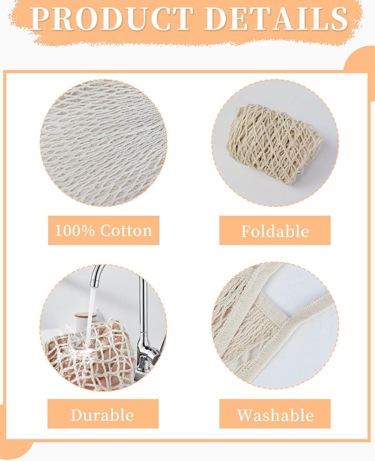 【Material de alta calidad】: las bolsas de compras de malla de algodón están hechas de algodón orgánico 100% natural, resistente al desgaste, biodegradable, duradero, resistente al desgarro e inofensivo, una alternativa ideal a las bolsas de plástico desechables.