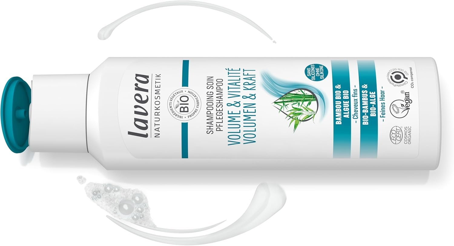 Naturalmente eficaces: descubre el secreto de los cuidados capilares de Lavera: natural y minuciosamente equilibrada, nuestra composición a base de bambú orgánico y quinoa orgánico ofrece más volumen y vitalidad al cabello frágil, sin apelmazarlo. La innovadora fórmula de cuidado proporciona una espuma especialmente ligera y facilita significativamente el desenredado. Descubre una nueva dimensión de flexibilidad y cuidado natural, sin ninguna silicona. Tener una buena conciencia con cosméticos naturales certificados: sin comprometer la calidad. Te prometemos: · utilizar fórmulas biodegradables y renunciar a las siliconas, a los microplásticos de estado sólido o líquido así como a los colorantes y conservantes artificiales*, · composiciones naturales que han sido compuestas armoniosamente y exclusivamente por la investigación de Lavera con los mejores activos de origen natural combinados finamente entre sí, · Cosméticos naturales que han sido certificados por instituciones independientes y Probado bajo control dermatológico. Lógica, · que este embalaje está compuesto por un 93% de materia reciclada, · ser una empresa con impacto neutro para el clima**. «la vera», la verdad, se compromete a la protección del clima y de los animales. * De acuerdo con el Reglamento de la UE sobre cosméticos ** Climatepartner.Com/12310-1610-1001.
