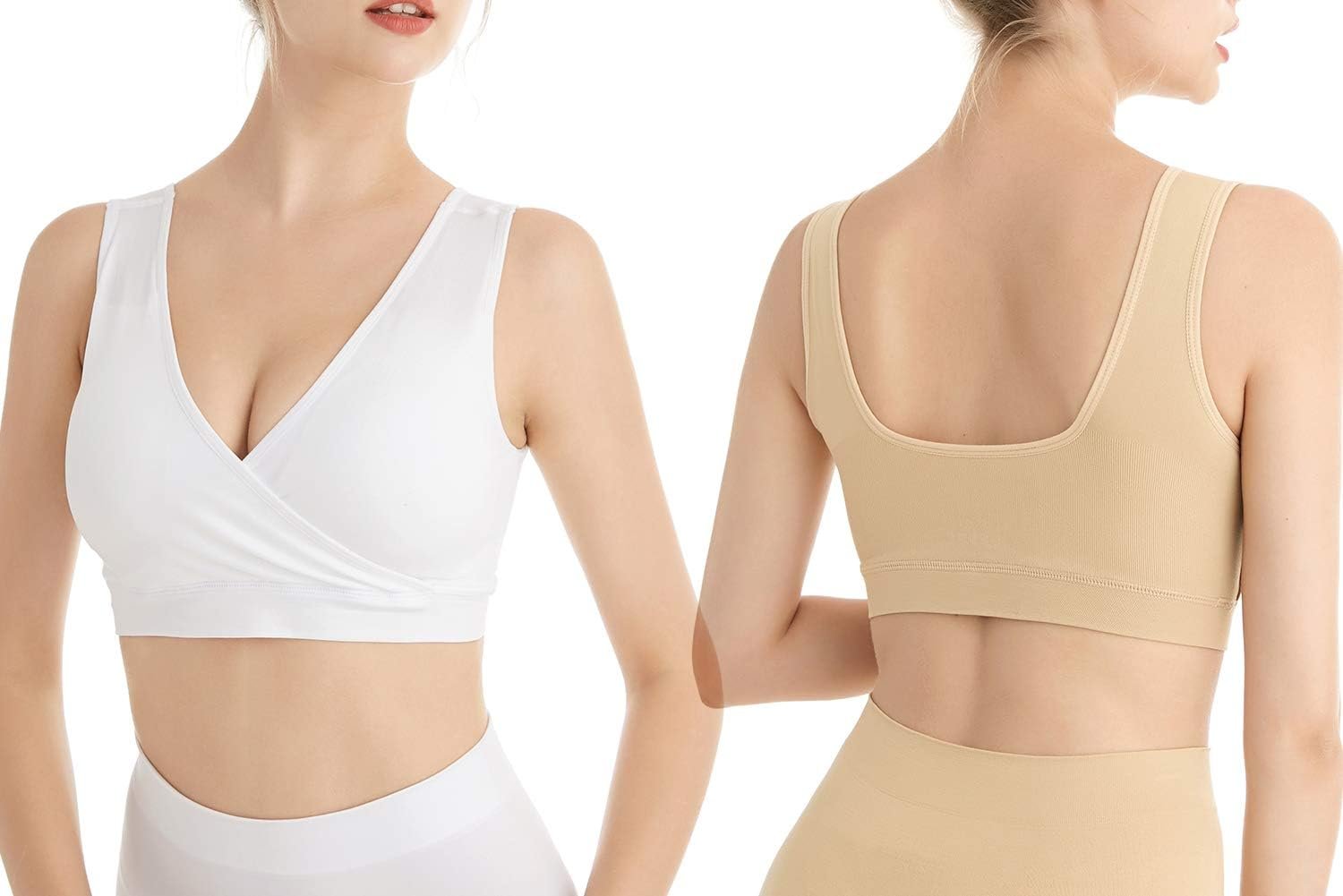It was time for new bralettes but it’s pretty tough to find bralettes for big breasted women; I took a chance ordering these thinking they looked exactly like a bralette being marketed for maternity wear and indeed they are perfect for my 34D needs. Very comfortable and no bulge at the back. The band is more reinforced than most bralettes so it has support under the boobs too. They have nice wide shoulder straps for support and plenty of stretch in the fabric overall. There are cup liners inside the lining but I pull them out. I am positively thrilled with this order and glad I took the chance they would serve my needs.