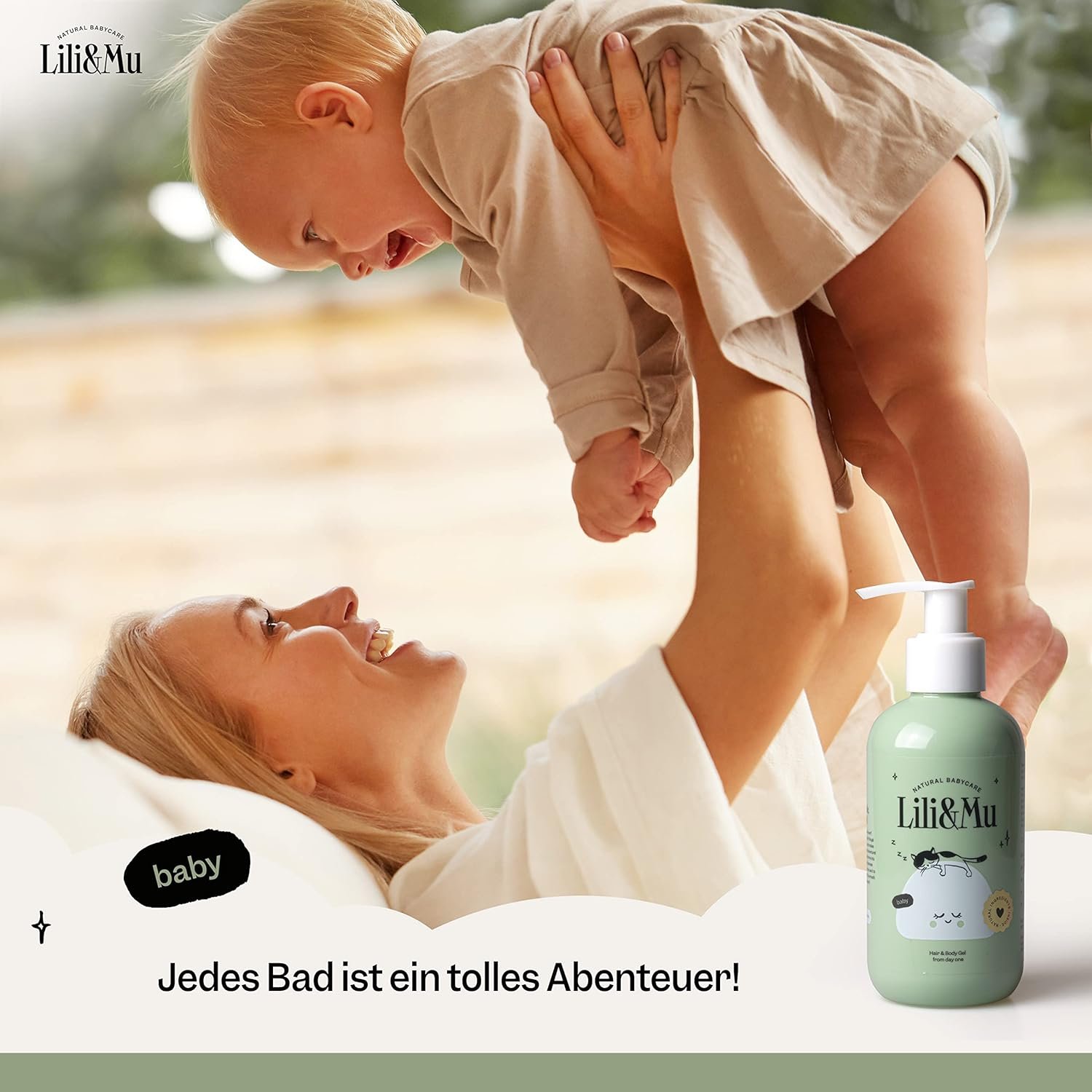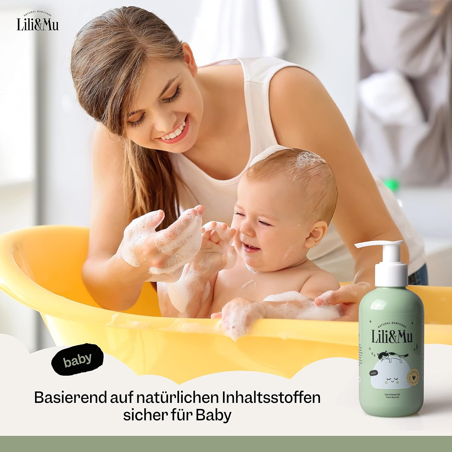 Das Lili&Mu Babyshampoo & Duschgel ist eine hervorragende Wahl für die sanfte Reinigung von Neugeborenen und Babys. Mit einer sorgfältig ausgewählten Formulierung, die Allantoin, Jojobaöl und Ringelblumenextrakt enthält, bietet dieses 200 ml Shampoo und Duschgel eine beruhigende und pflegende Erfahrung für die zarte Haut Ihres Babys.Das Produkt ist frei von Silikonen und SLS, was es besonders hautfreundlich und sicher für die tägliche Anwendung macht. Es ist zudem als Naturkosmetik zertifiziert, was Eltern die Gewissheit gibt, dass sie ein qualitativ hochwertiges und umweltfreundliches Produkt verwenden.Dieses Babyshampoo und Duschgel erzeugt einen milden Badeschaum, der die Haut und das Haar Ihres Babys sanft reinigt, ohne zu reizen. Dank der natürlichen Inhaltsstoffe bleibt die Haut weich und gepflegt, und das Haar lässt sich leicht kämmen.Insgesamt überzeugt das Lili&Mu Babyshampoo & Duschgel durch seine sanfte, aber effektive Reinigung und Pflege. Es ist eine ideale Wahl für Eltern, die ein sicheres, natürliches und wirksames Produkt für die Körperpflege ihres Babys ab dem ersten Lebenstag suchen.