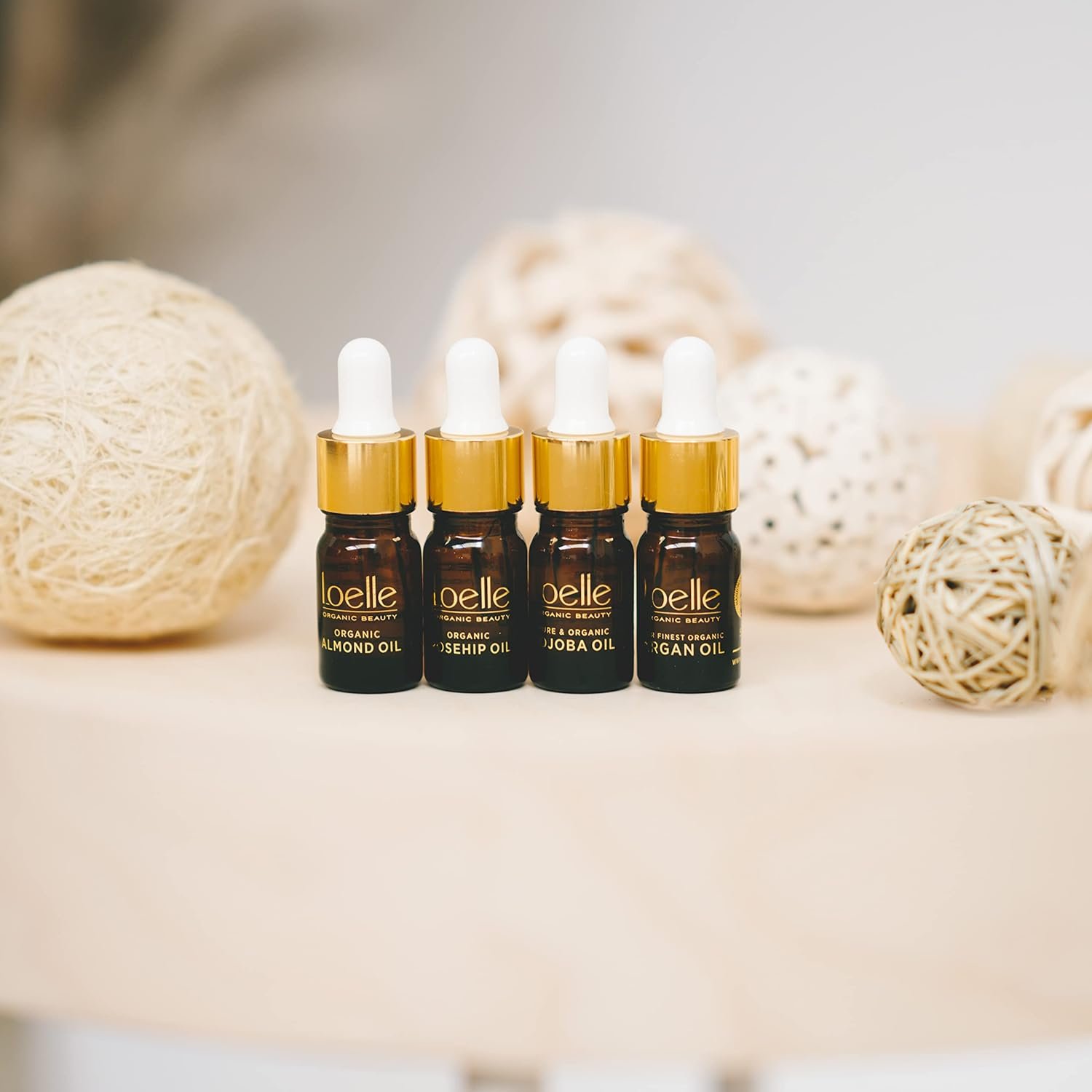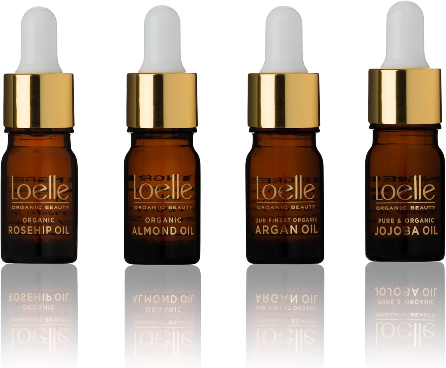 Loelle – Paquete de cuidado de la piel, 4 Aceites Corporales – Set de Cosméticos Naturales con Aceite de Almendras, Rosa Mosqueta, Argán y Jojoba – Set de Regalos para Mujer y Cuidado Corporal, 4x5ml