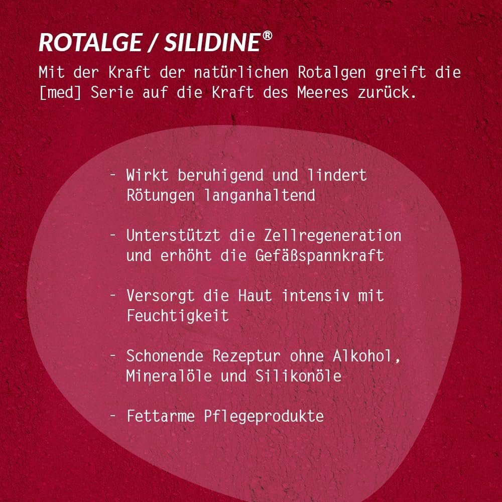 La exclusiva de principio activo silidine se compone de la rojo algas ganado. fortalece las paredes de vasculares y mejora la fuerza de sujeción de vasos. así rojeces reducir de manera sostenible y la regeneración de la piel células apoya.
