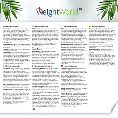 Acerca de este producto ¿Por Qué Escoger los Comprimidos de Melatonina Pura 1,9 mg de WeightWorld? – Para esas noches que parecen no terminar nunca y para esos días hecho papilla, esta es la elección de origen natural perfecta como inductor del sueño natural. Con 400 comprimidos de melatonina de liberación prolongada, tendrás más de un año de noches tranquilas. Bienvenido a una nueva dimensión de descanso. Conciliar el Sueño Nunca Tuvo una Solución Tan Natural – Y es que este complemento cuenta con extracto de pasiflora y de manzanilla, así como magnesio y vitamina B6, que contribuyen a reducir el cansancio y la fatiga (corroborado por la EFSA). Si lidias con Jet Lag o esas noches eternas sin descansar, la melatonina contribuye a reducir el tiempo necesario para conciliar el sueño (EFSA). Magnesio, Melatonina y Pasiflora en Comprimidos, Perfecta para Trotamundos – Su elevada potencia de 1,9mg de melatonina retard por comprimido es ideal si estás en busca de resultados. El reducido tamaño del envase y las pastillas la convierten en una opción increíblemente oportuna para aquellos que viajen mucho. ¡La Melatonina Complex será tu fiel compañera de aventuras Suplemento de Melatonina Natural Vegano, Vegetariano y Apto Para Dieta Keto – Nuestros comprimidos de melatonina de liberación sostenida son aptos para una dieta vegana, keto, sin gluten o sin lactosa. Creemos en aprovechar lo que nos da el mundo sin comprometer tus necesidades. ¡Sólo debes tomar un comprimido de melatonina para dormir unos 30 minutos antes y tendrás para más de 1 año ¿Cuál es la Historia de WeightWorld? – WeightWorld es una pequeña empresa familiar con más de 18 años de experiencia. En todos estos años nos hemos convertido en una marca de referencia en suplementos alimenticios, vitaminas y minerales. Además todos nuestros productos utilizan ingredientes de gran calidad y con los estándares de fabricación GMP. › Ver más detalles