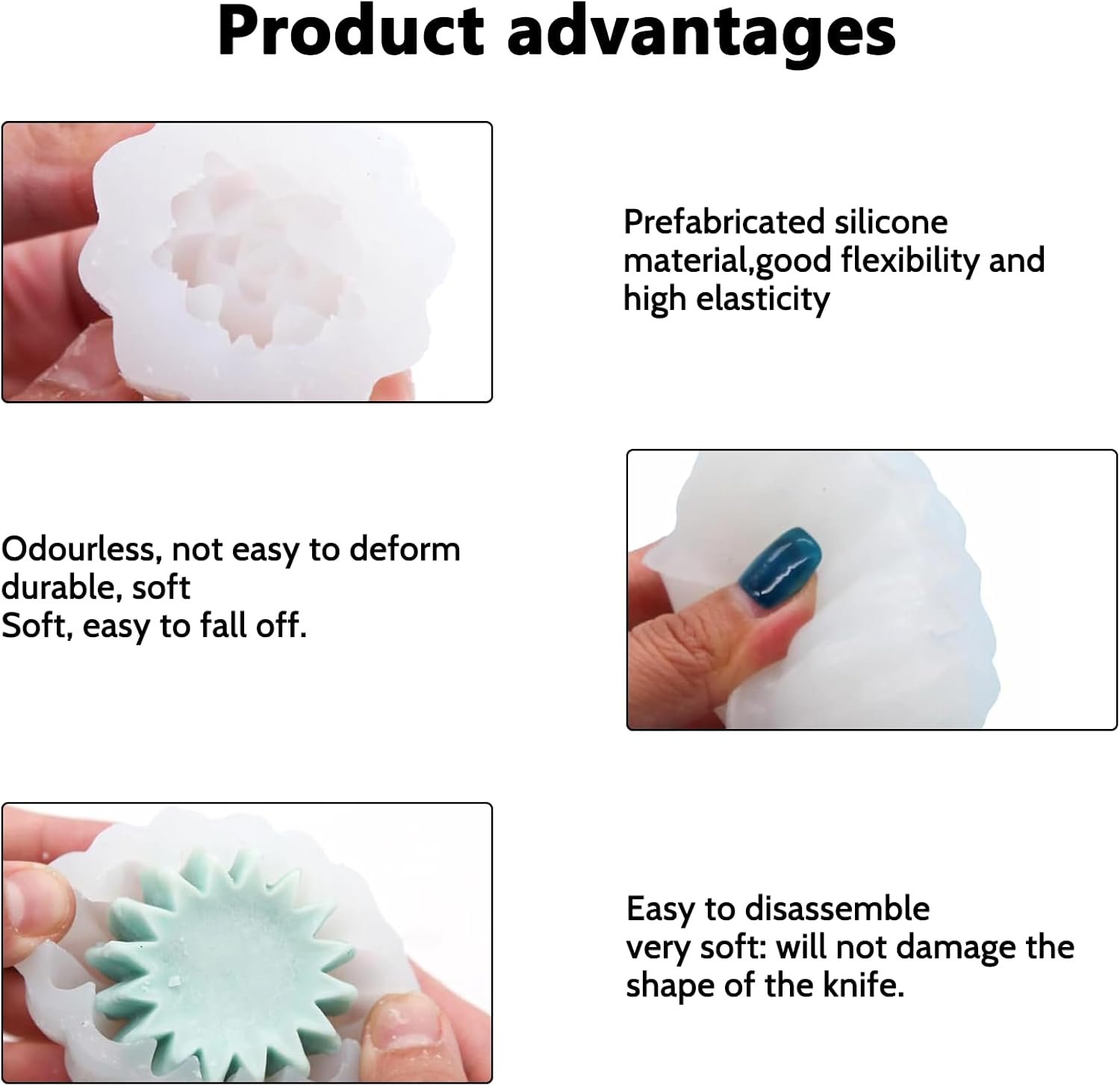 Excelente calidad: el juego de manualidades está hecho de material de silicona de alta calidad, que es suave, duradero, resistente al desgarro y fácil de limpiar. Con esta maravillosa forma, puedes hacer tu propia decoración especial para tartas, velas de aromaterapia, arte de moldeo de resina epoxi, jabones, lápices de colores y más.