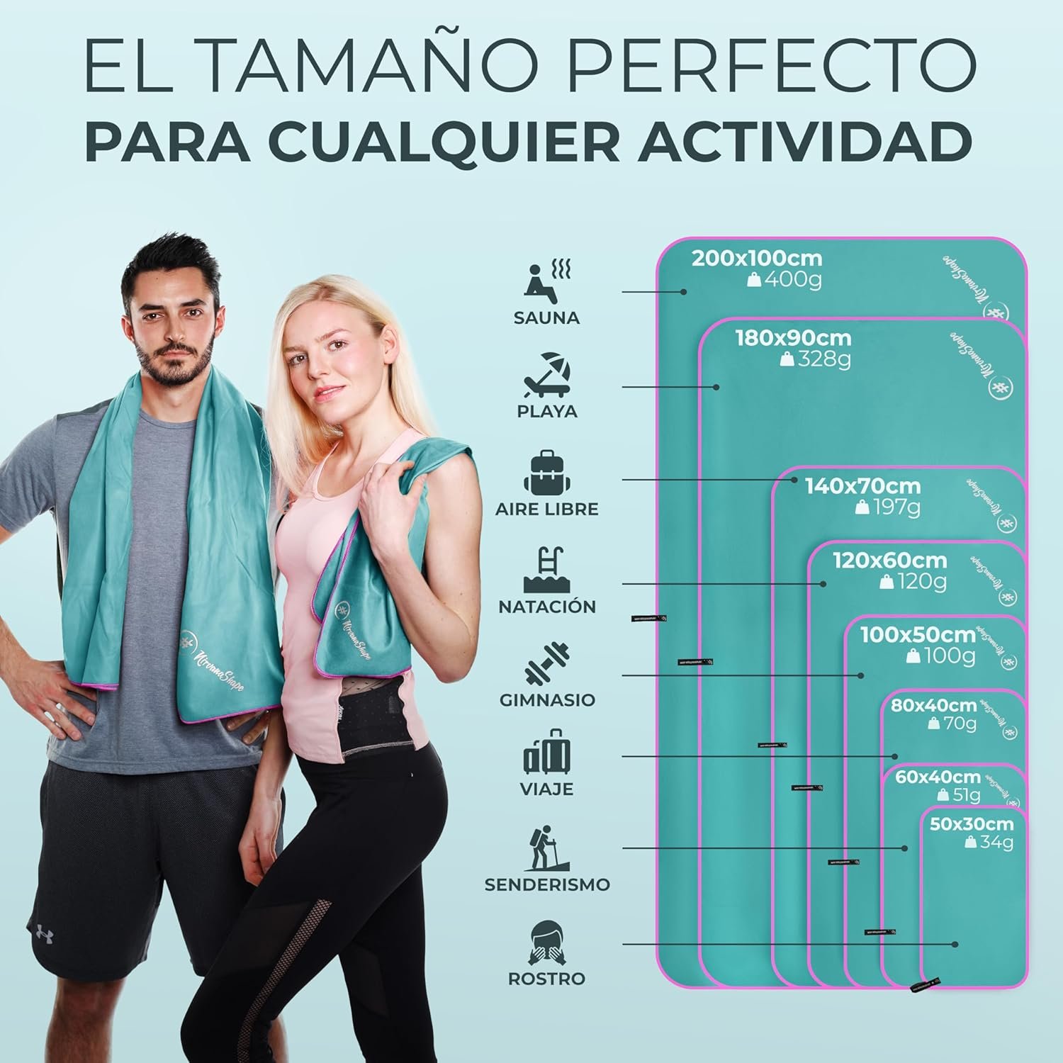¡Disfruta de la variedad en la mejor compañía! Con las toallas de microfibra NirvanaShape, irás perfectamente equipado para cualquier actividad, en la playa, de viaje, haciendo deporte o en tu próxima aventura al aire libre.