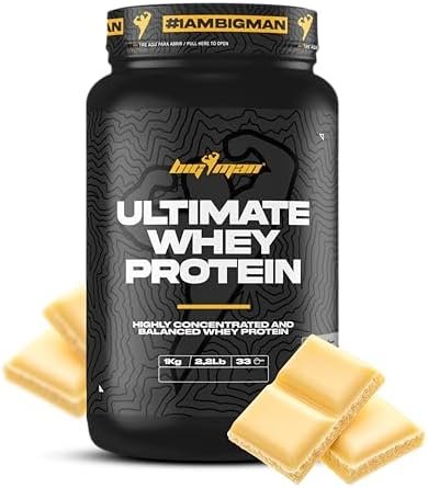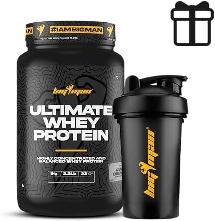 Pack BigMan Ultimate Whey Protein 1 kg + Shaker de REGALO | Aumenta el crecimiento muscular | Entrenamientos intensos | Máxima asimilación (Choco Blanco)