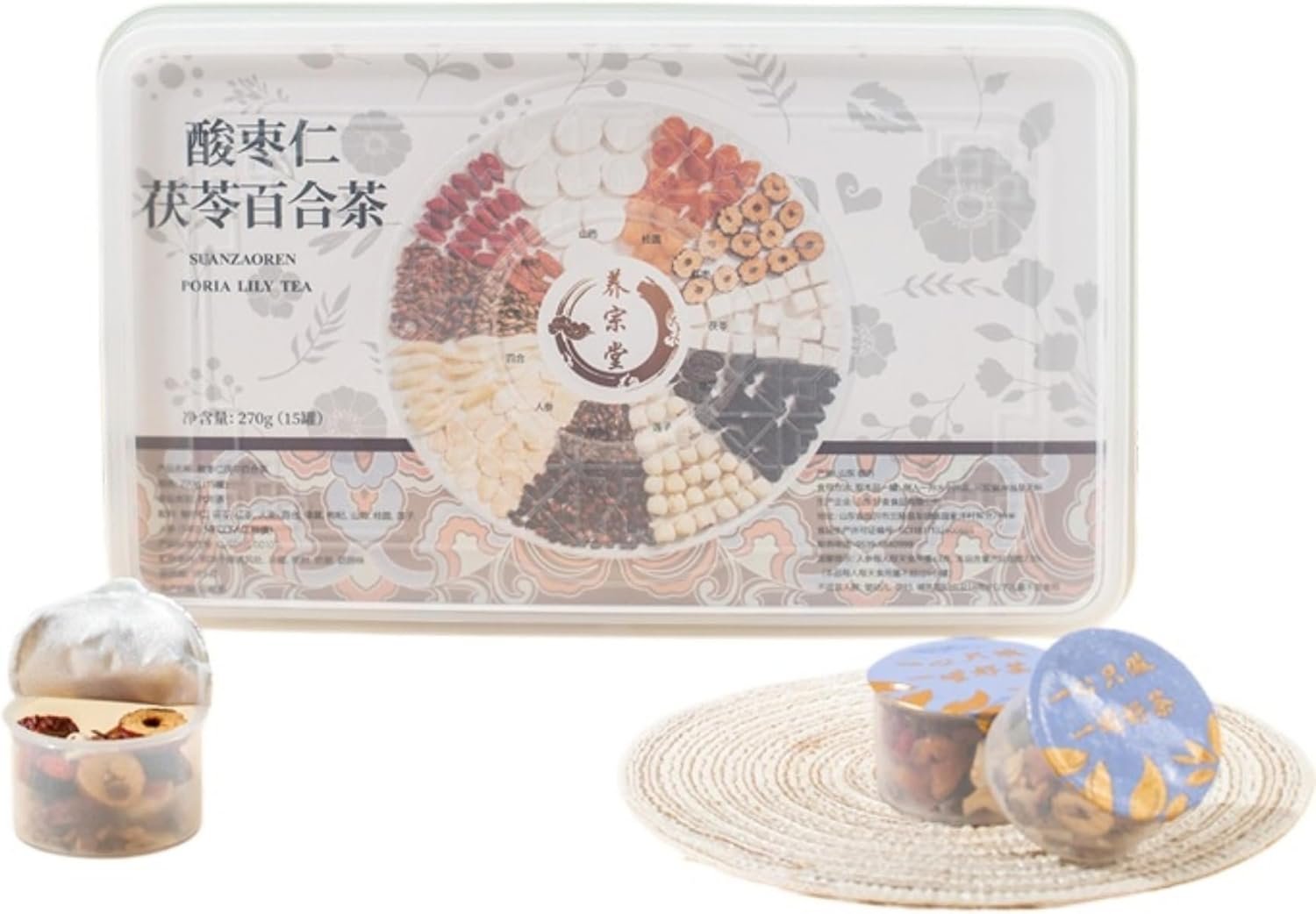 Premium Té de lirio con dátiles agrios, etc. Combinación Té de hierbas 15 latas/caja Té para dormir Wellness 270g (9,52oz)