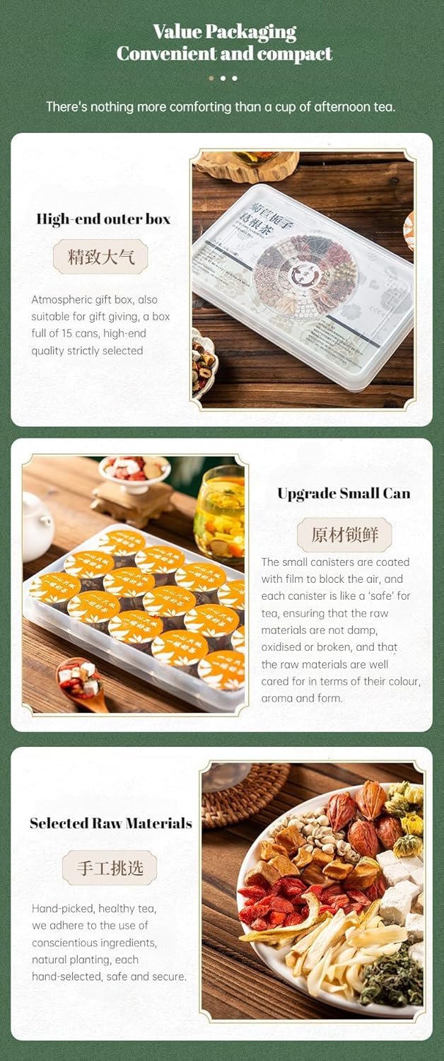 El té de hierbas es una bebida versátil que se puede disfrutar en las cuatro estaciones. Ya sea para refrescarse en verano, calentar en invierno o simplemente saciar su sed en cualquier época del año, nuestros tés son la opción ideal. Con funciones como aliviar el calor del verano, evacuar el viento y el calor y promover la digestión, nuestros tés de hierbas son imprescindibles para todos los amantes del té.