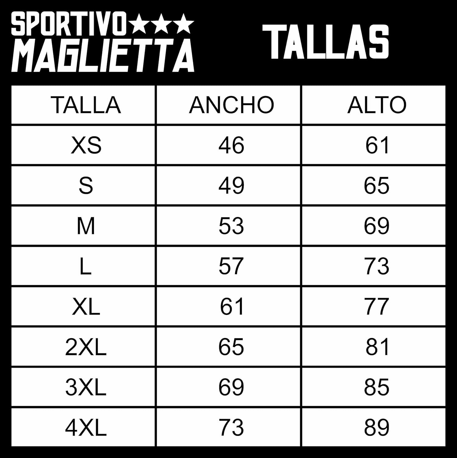 Hola, somos SPORTIVO MAGLIETTA. Una marca de origen argentino radicada ahora en Europa y con la idea de difundir eso que tanto nos caracteriza, ¡La pasión! La pasión que en general le ponemos a todo lo que hacemos, pero sobre todo al futbol. La idea es llegar a todos los argentinos que siguen viviendo esa pasión a la distancia, pero también al resto del MUNDO, que quizás no la ha vivido en primera persona pero que también la conoce. Todos los diseños con los que trabajamos son propios y únicos, no es nuestro objetivo el de hacer réplicas, más bien todo lo contrario hacer «originales» siendo ORIGINALES. Para facilitar la elección de tu talla, hemos agregado en las imágenes del producto una tabla con las medidas de las prendas con las que trabajamos. La idea es que con una prenda que ya estes utilizando, y sepas que te va bien, tomar medidas y de esa forma poder seleccionar en la tabla la talla que mejor se adapte a ti. Si has llegado a esta publicación, estamos seguros que te interesará conocer todo el resto de nuestro CATÁLOGO de productos, los puedes visitar aquí mismo en nuestra Tienda. Esperamos que disfrutes de tu compra con la TRANQUILIDAD de obtener un producto de calidad y sabiendo que lo puedes cambiar o devolver sin problemas y sin coste.