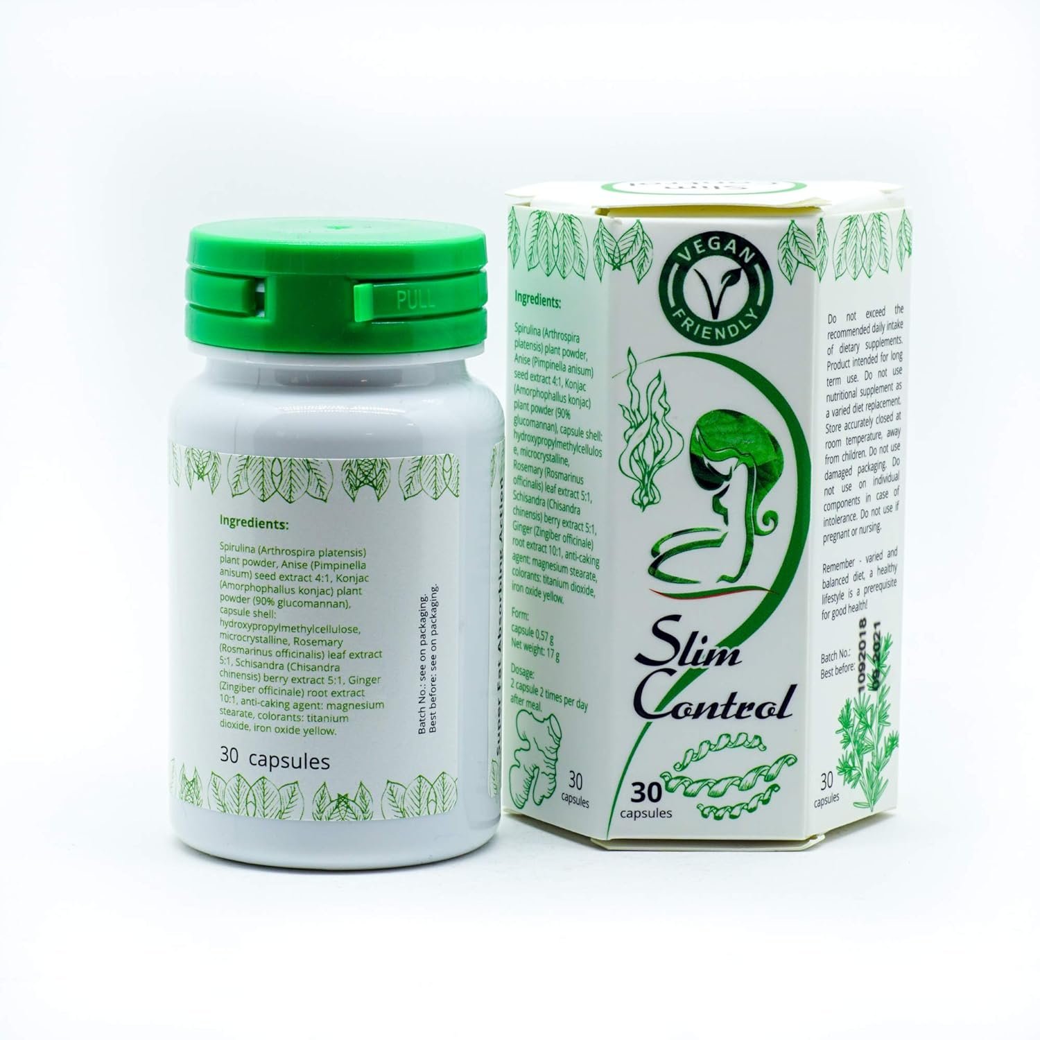 Slim Control – Reduce el apetito | Spirulina | Raíz de Konjac para adelgaza | Vegano | Perder Peso | Sin Aditivos