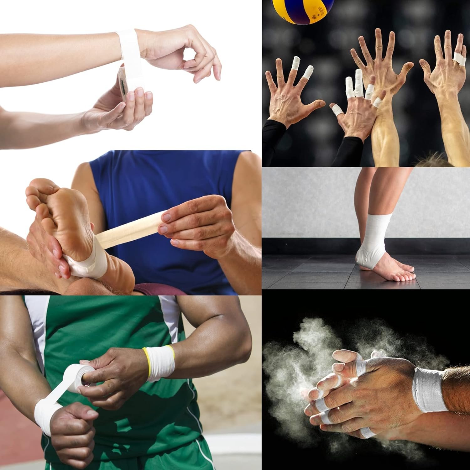 Protector de dedos en voleibol y escaladaVendaje de boxeo y kick boxingVendas de tobillo, muñeca, rodilla y manoProtectores para las espinilleras y calcetines de fútbolVendaje de crossfit, halterofilia, gimnasia rítmica, atletismo…