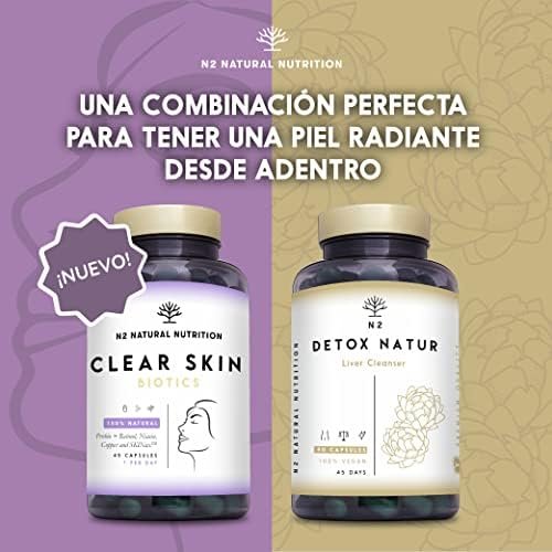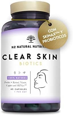 Acerca de este producto ✨TRATAMIENTO PARA MANCHAS FACIALES ÚNICO EN EL MERCADO: Clear Skin Biotics es un suplemento innovador único en el mercado formulado con 9 potentes principios activos, entre ellos SkinAX, retinol y Zinc, extractos de frutas, probióticos y minerales para cubrir todas las necesidades de tu piel. Después de 8 semanas proporciona resultados comprobados: una piel luminosa y firme, reduce la apariencia de los poros, la producción de sebo y los puntos negros, además de atenuar manchas y ojeras. 💖FÓRMULA EXCLUSIVA CON INGREDIENTES REGISTRADOS Y ESTUDIOS CLÍNICOS: Clear Skin es un despigmentante facial que te ayuda a prevenir manchas e impurezas cutáneas con resultados comprobados. Según estudios clínicos, la combinación antioxidante de SkinAX reduce la coloración en 35% e imperfecciones en 14.4%, en tanto que mejora la luminosidad en 26% y la elasticidad en 9%. Por su parte, los probióticos ayudan a prevenir problemas cutáneos como el acné, puntos negros, granos y sebo facial. 💊 SUPLEMENTO 100% NATURAL EN CÁPSULAS VEGETALES: Clear Skin Biotics de N2 se presenta en cápsulas vegetales en lugar de comprimidos, para aportar la concentración más alta. Su formulación en cápsulas minimiza el uso de aglomerantes y reduce la irritación intestinal, al mismo tiempo que maximiza la absorción de los principios activos. Todos sus ingredientes están libres de transgénicos, sustancias tóxicas, colorantes y preservantes artificiales, lácteos y azúcar. 🥇 PRODUCTO CERTIFICADO CON ESTÁNDARES EUROPEOS DE CALIDAD: Clear Skin es un suplemento 100% natural fabricado en laboratorios de la CE que cumplen con estrictas normas europeas, siguendo los procesos de fabricación ISO 9001, FDA Americana, GMP (Buenas Prácticas de Fabricación). Nuestro producto es libre de crueldad animal, elaborado con prácticas sostenibles y respetuosas con el medio ambiente. Además, su envase es biocompostable realizado con material 100% vegetal. 📩GARANTÍA DE SATISFACCIÓN: La satisfacción de los clientes es la razón de ser de N2 Natural Nutrition. Para cualquier pregunta o sugerencia, no dudes en contactarnos. Nuestro equipo de nutricionistas y expertos te ofrecerán la mejor solución lo antes posible. › Ver más detalles