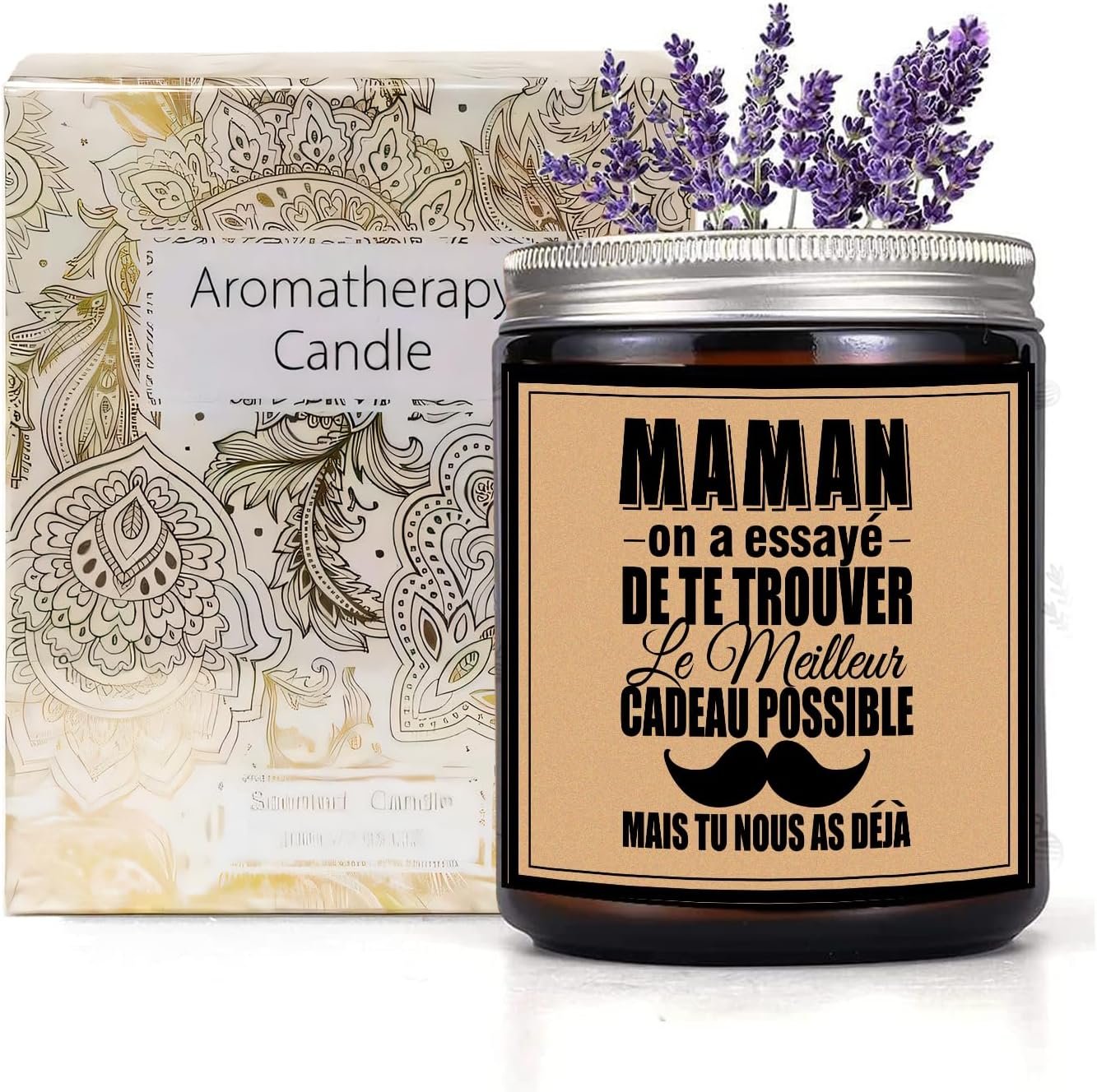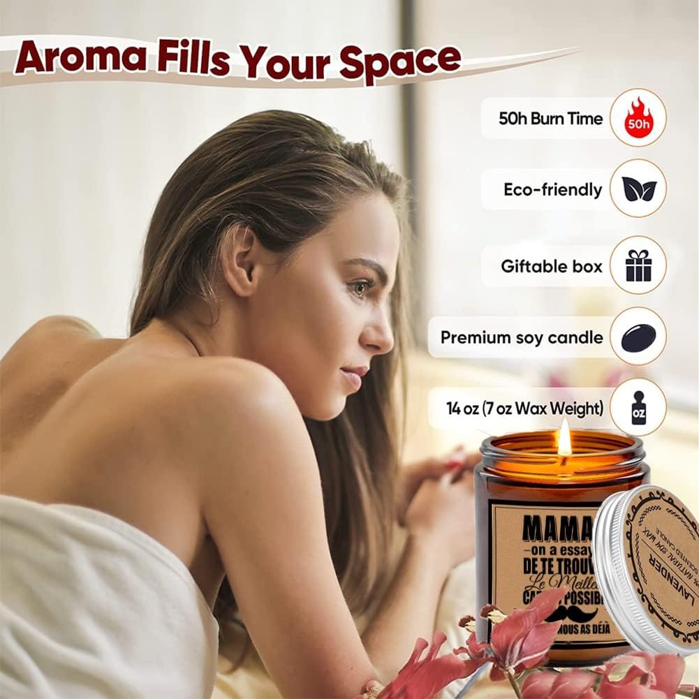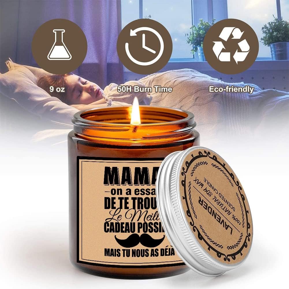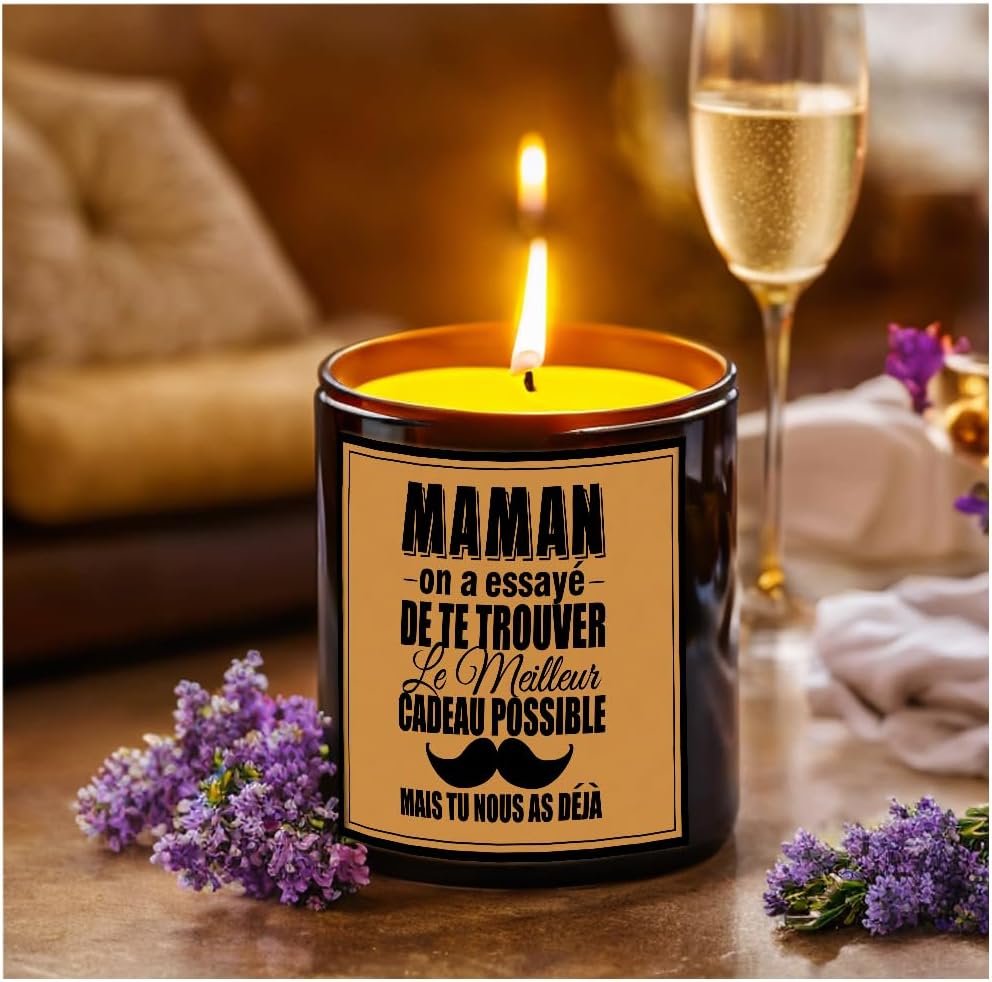 IDEA DE REGALO: Regalos divertidos, reflexivos y únicos de mamás para cumpleaños o Día de la Madre, Día de Navidad, aniversario. Caracterizado por su letra «MAMAN ON A ESSAYE DE TE TROUVER LE MEILLEUR POSSIBLE GIFT, MAIS TU NOUS NOUS DEJA» Después del Día de la Madre, esta vela perfumada será un recuerdo inolvidable de hijos, hijas, maridos, amigos…… Pero más que eso, cada vez que la vela esté encendida, ¡mamá sentirá tu amor por ella
