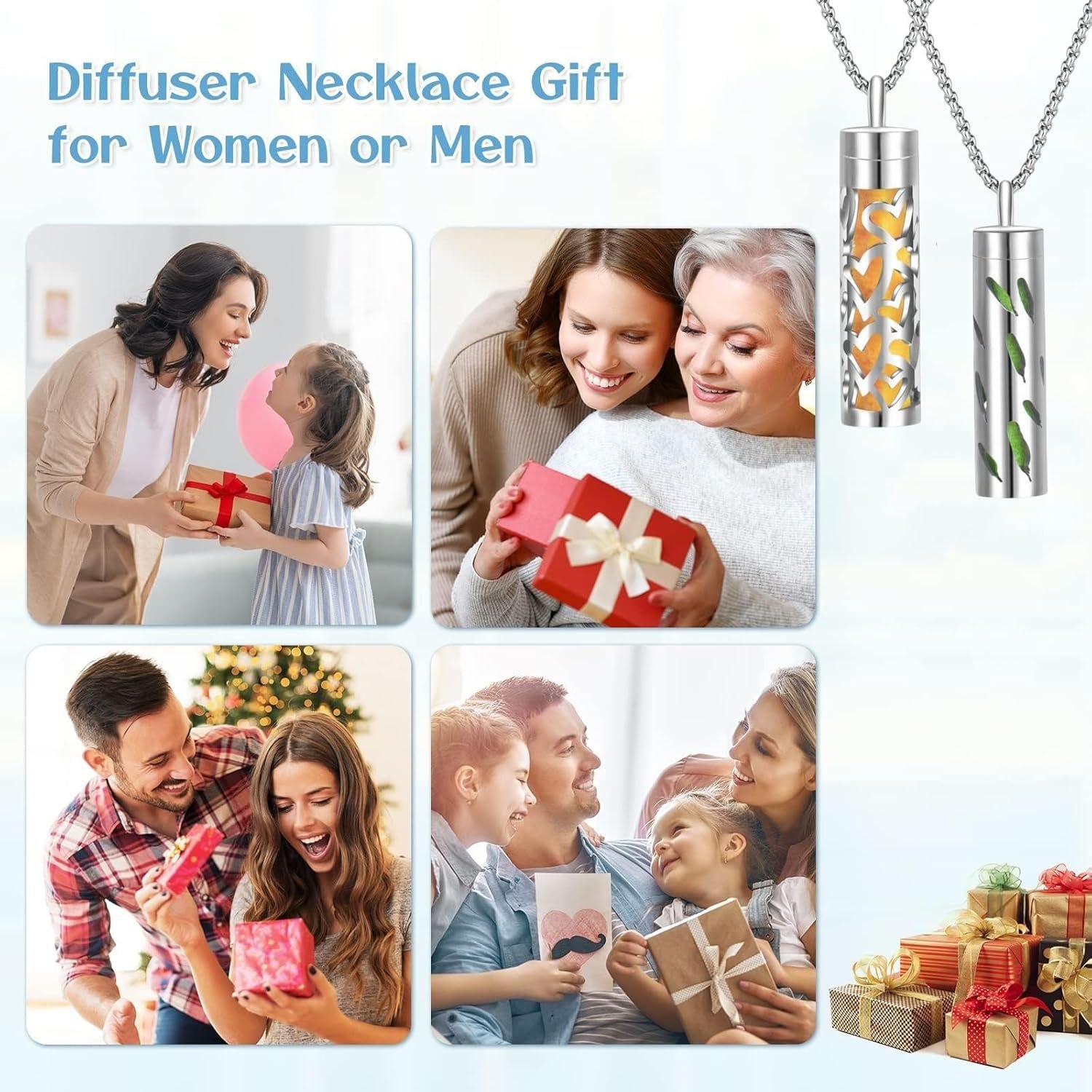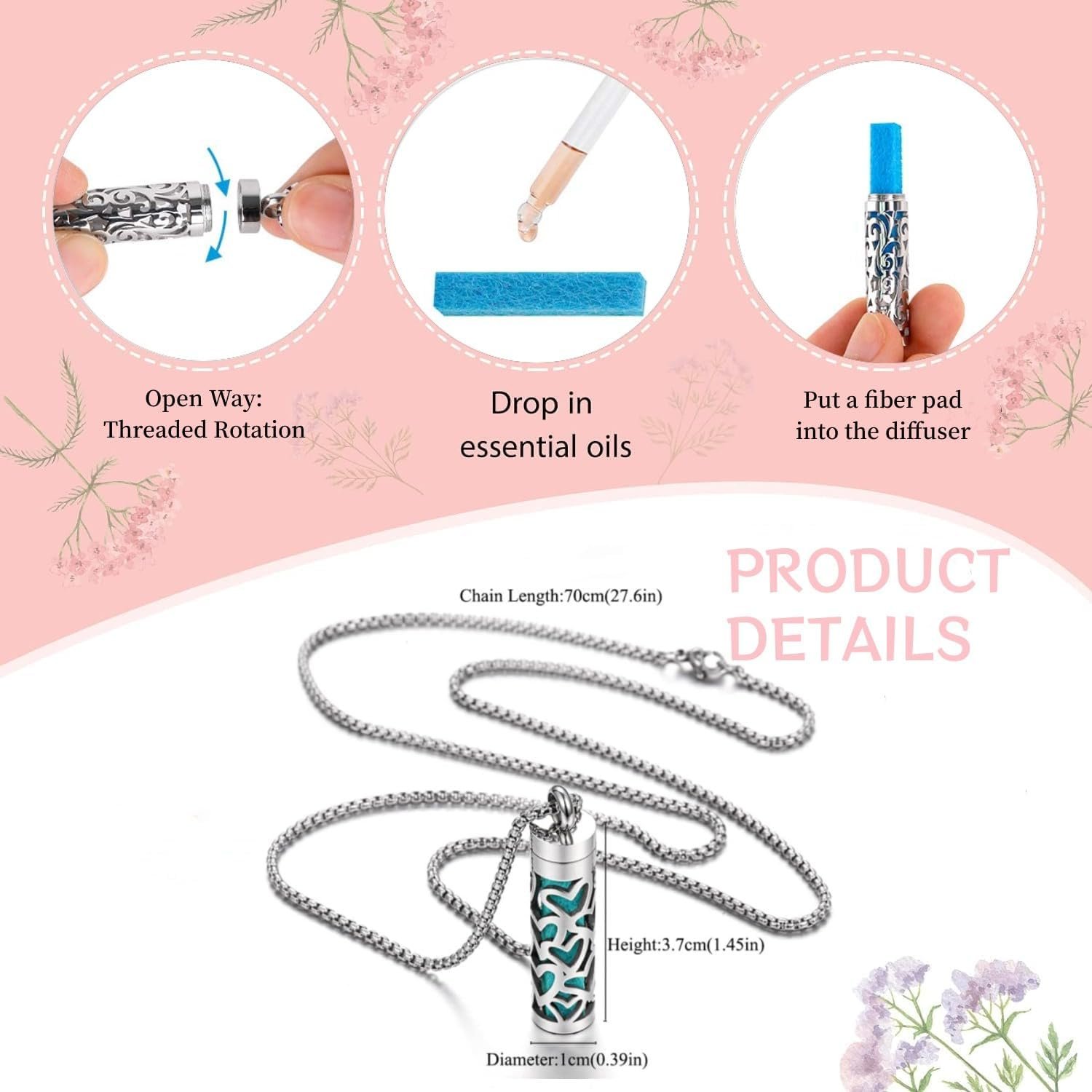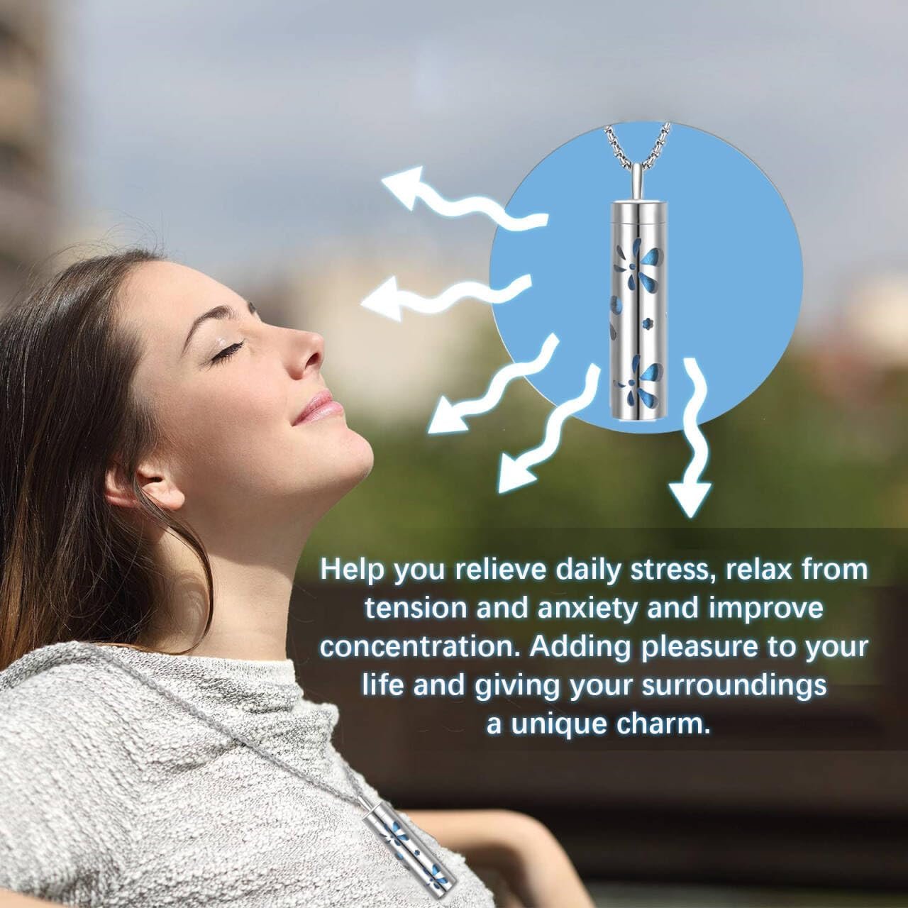 WATEFOER Collar de Aceite Esencial de aromaterapia, Collar difusor de Acero Inoxidable con 10 Almohadillas de Fieltro, Joyas con aceites Esenciales Regalo para Mujer Hombre