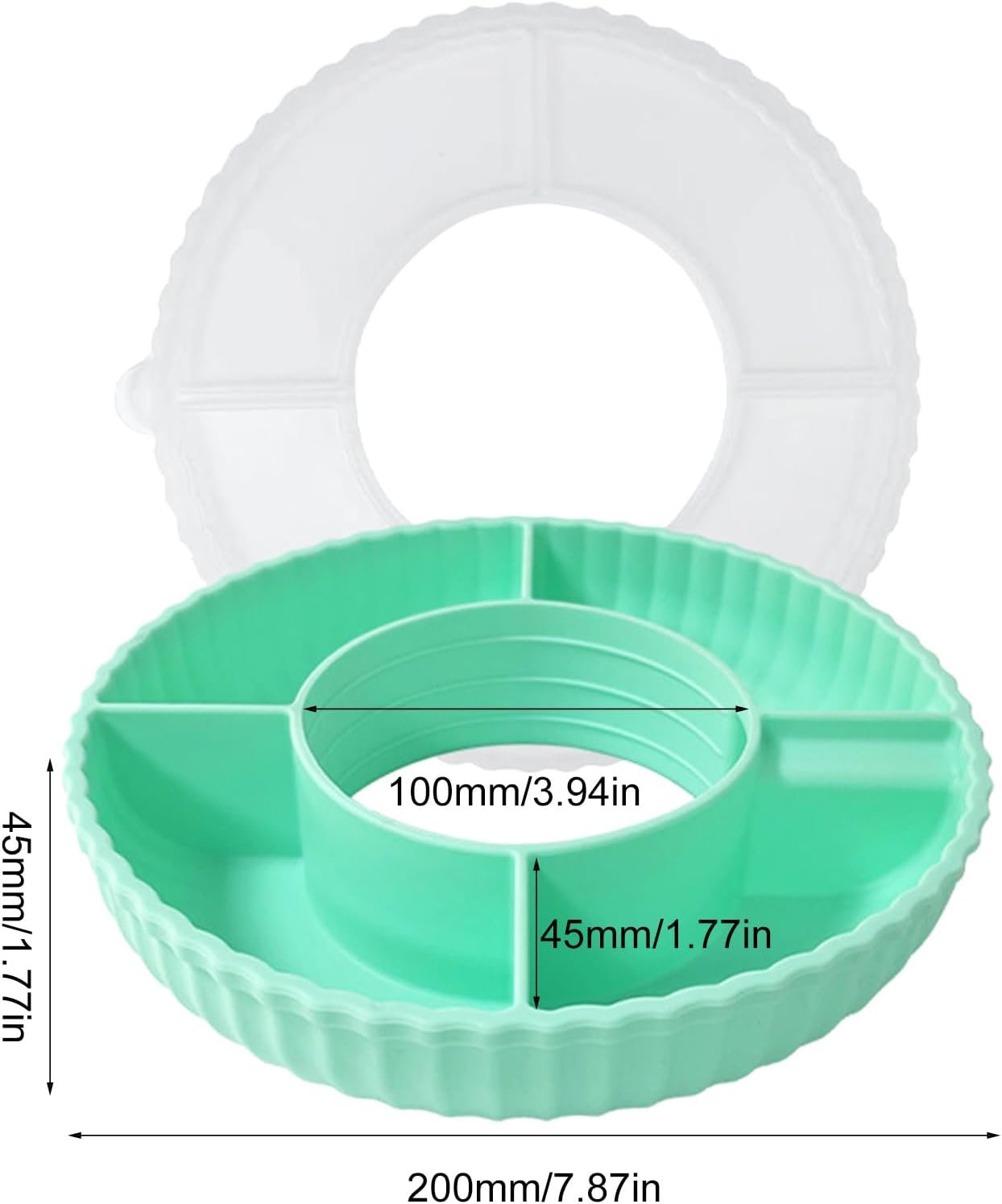 Este cuenco para aperitivos está fabricado con silicona de calidad, seguro y fácil de limpiar. Sus compartimentos te permiten almacenar una variedad de aperitivos, perfectos para campamentos y reuniones.