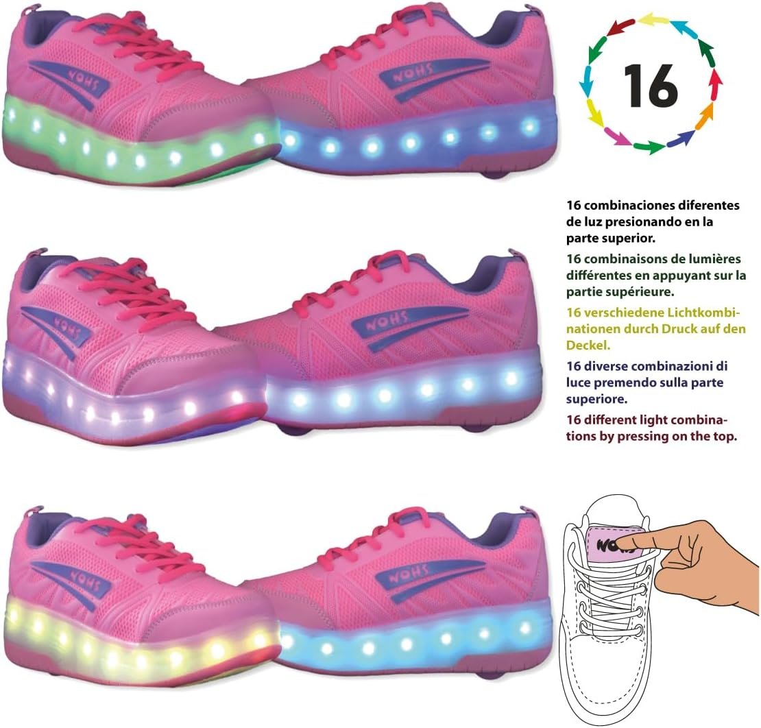 Zapatillas Deportivas con Dos Ruedas y Luces. Recargables, 16 Efectos de Luces. Rueda Trasera automática.